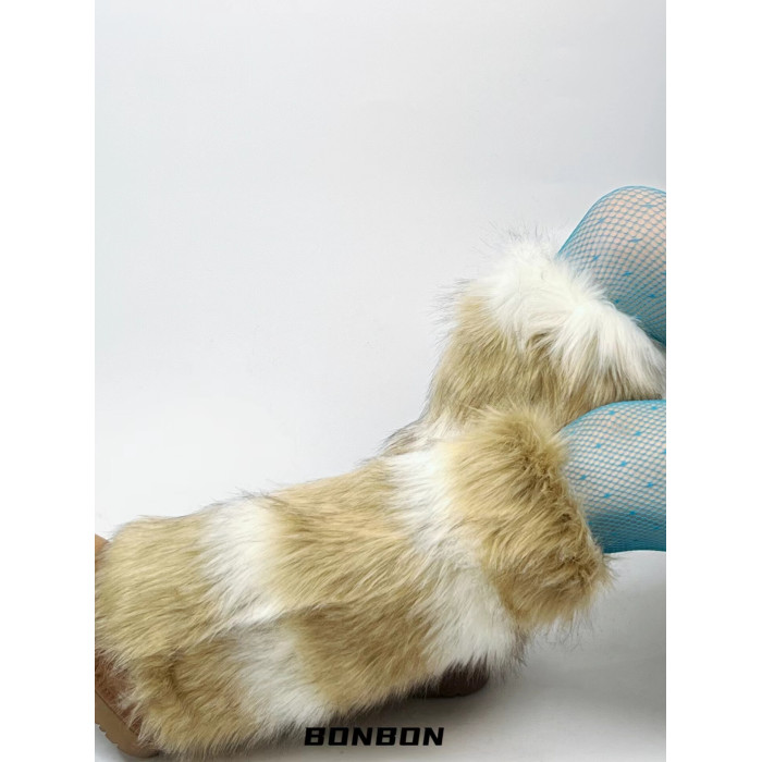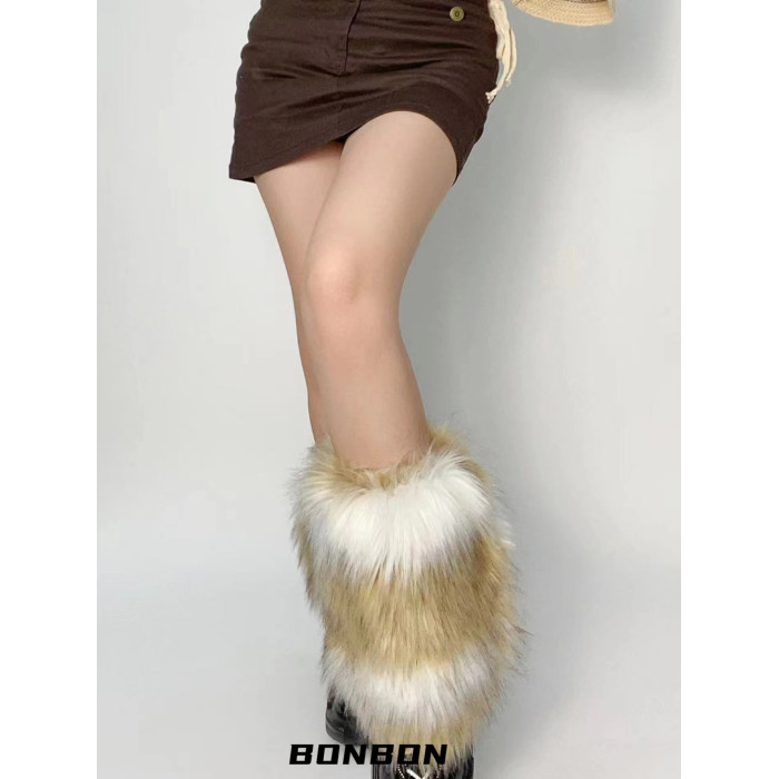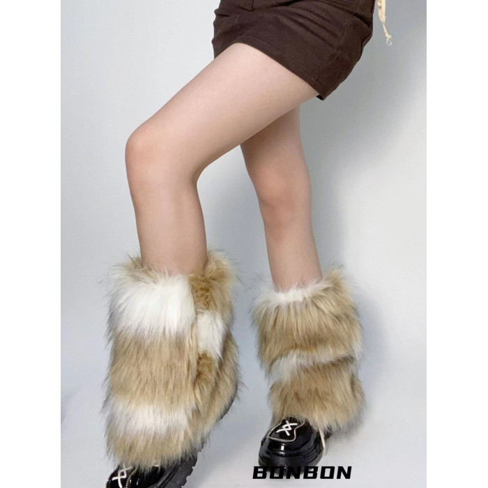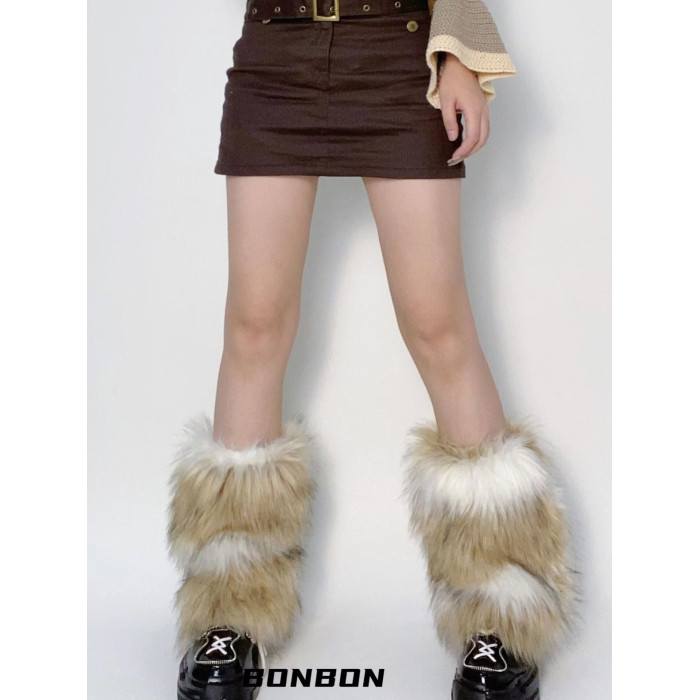 BON 復古摩登咖色毛毛鞋套仿皮草靴子襪套千禧風辣妹腿套y2k秋冬