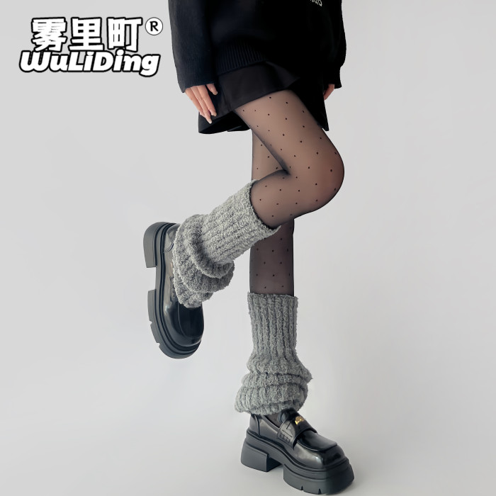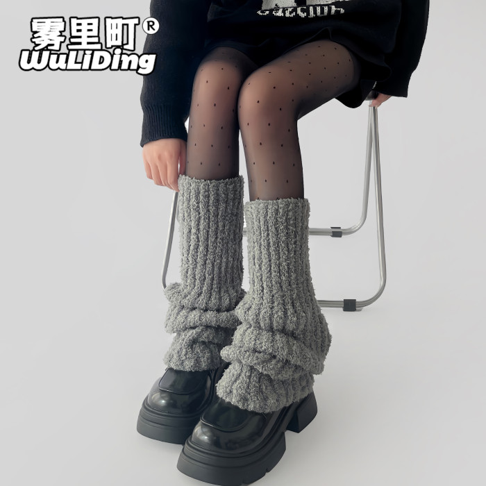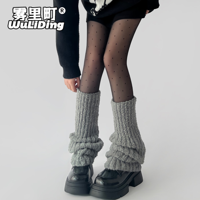 霧裡町 復古灰辣妹毛茸茸襪套加厚灰色絨毛保暖堆堆基礎腿套黑絲