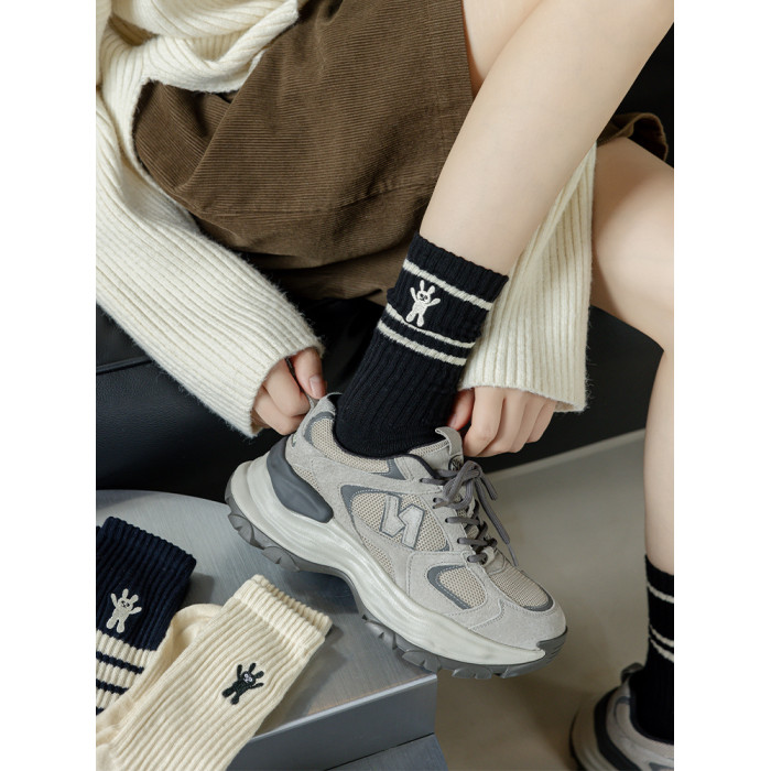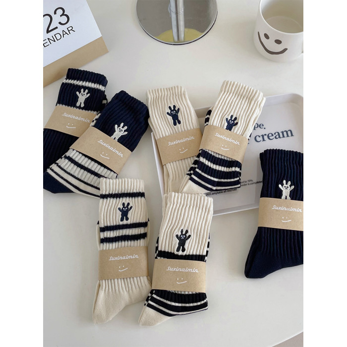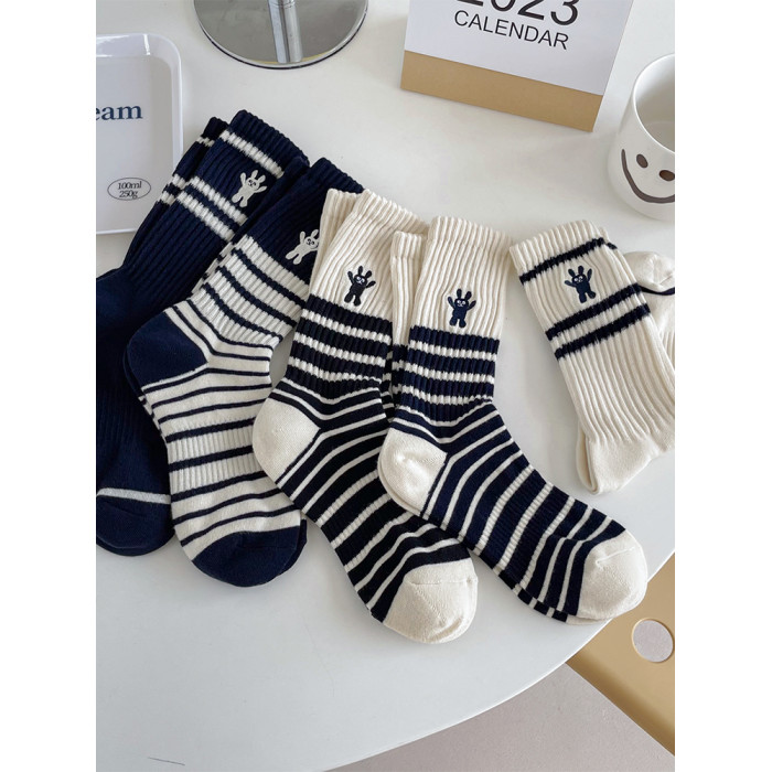 條紋兔子襪子女中筒襪純棉ins潮春秋季日系可愛運動秋冬堆堆長襪