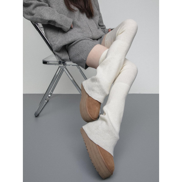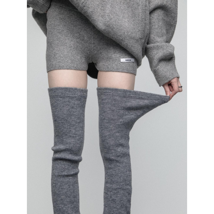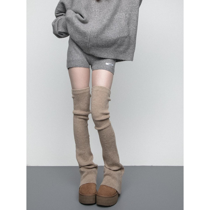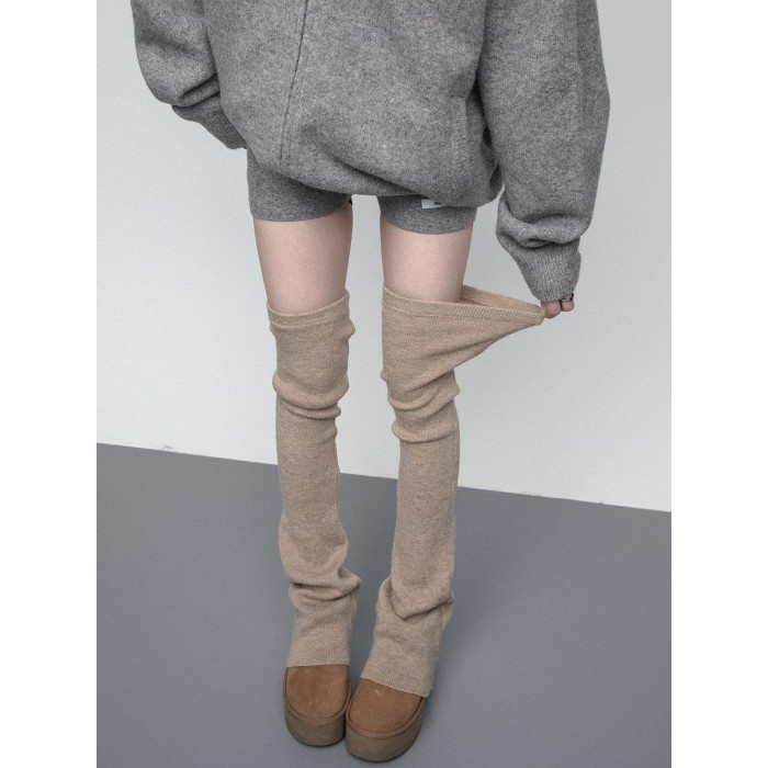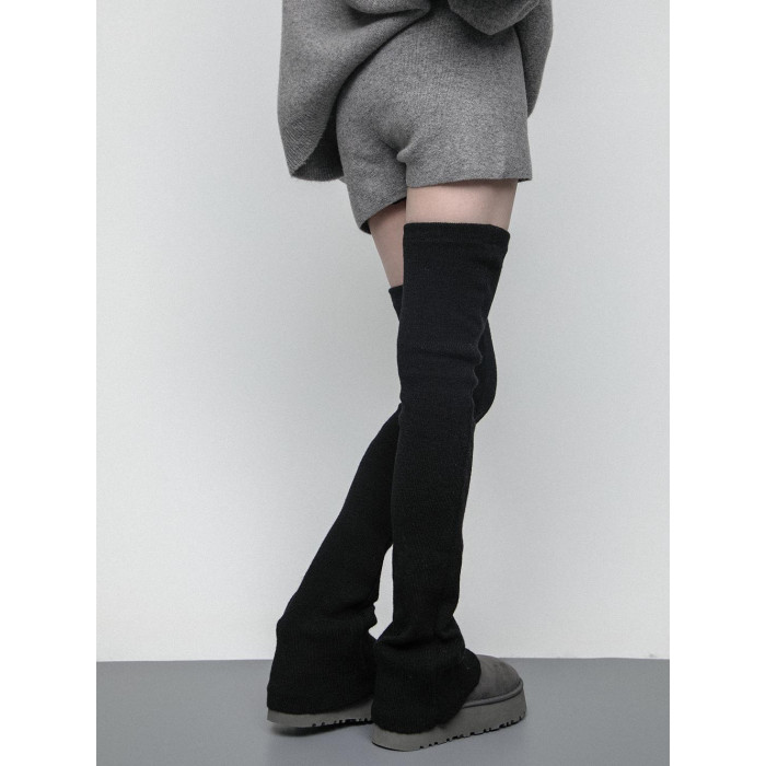 SS2L秋冬純色柔軟高彈針織微喇加厚保暖過膝大腿襪堆堆襪套腿套女