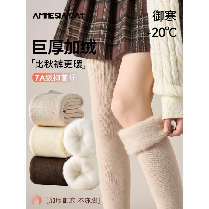 羊絨襪子女秋冬季過膝襪保暖護膝襪加絨長襪冬天小腿襪加厚大腿襪