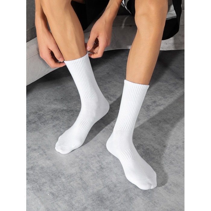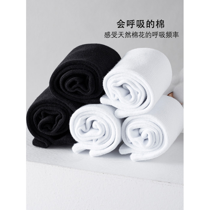MENXX襪子男長筒襪女襪純棉夏季黑白純色加厚毛巾底中筒男士長襪