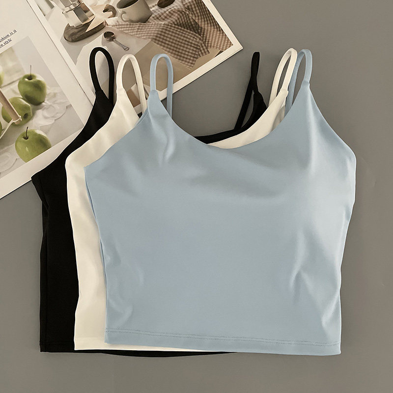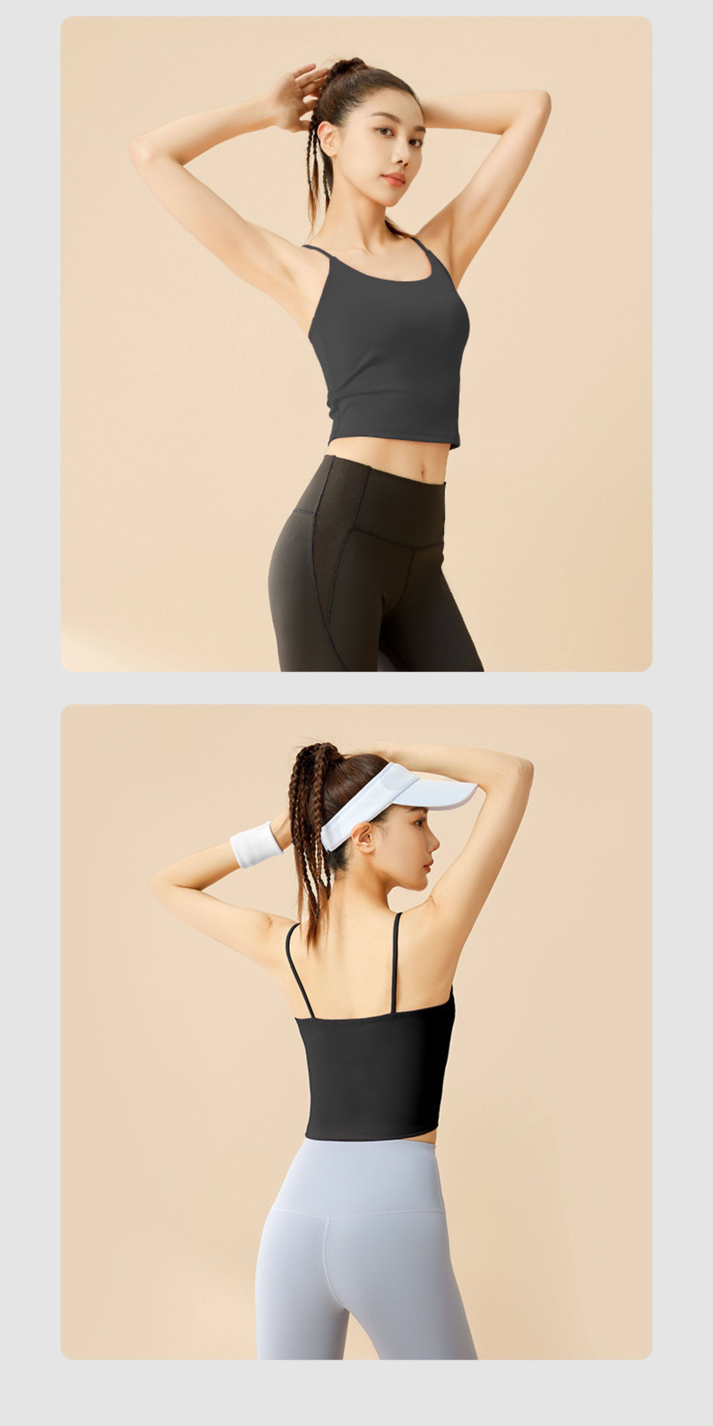 薄款細帶一體杯運動裸感美背瑜珈運動夏季普拉提透氣速乾跑步文胸