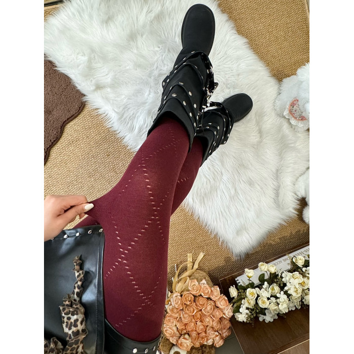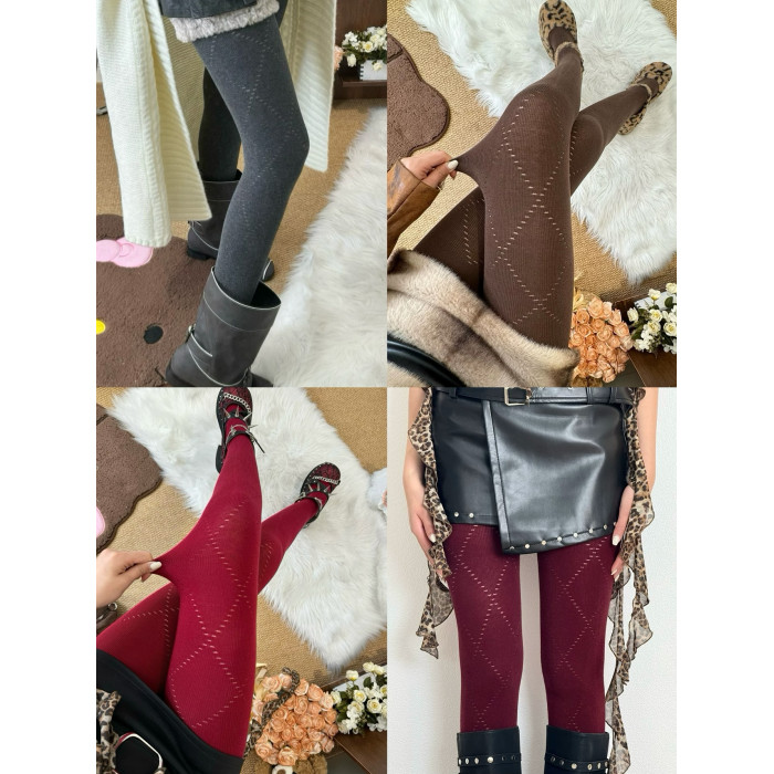 BON 復古菱格彈力顯瘦棉質連褲襪韓系鏤空多色性感美腿打底襪秋冬