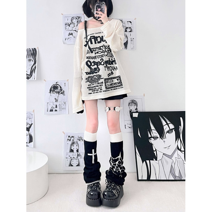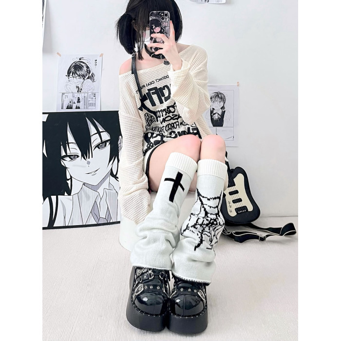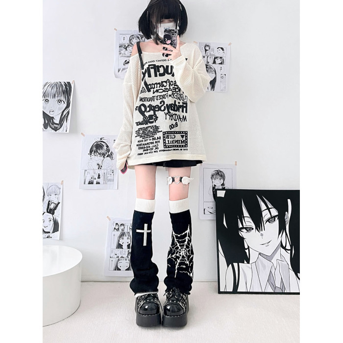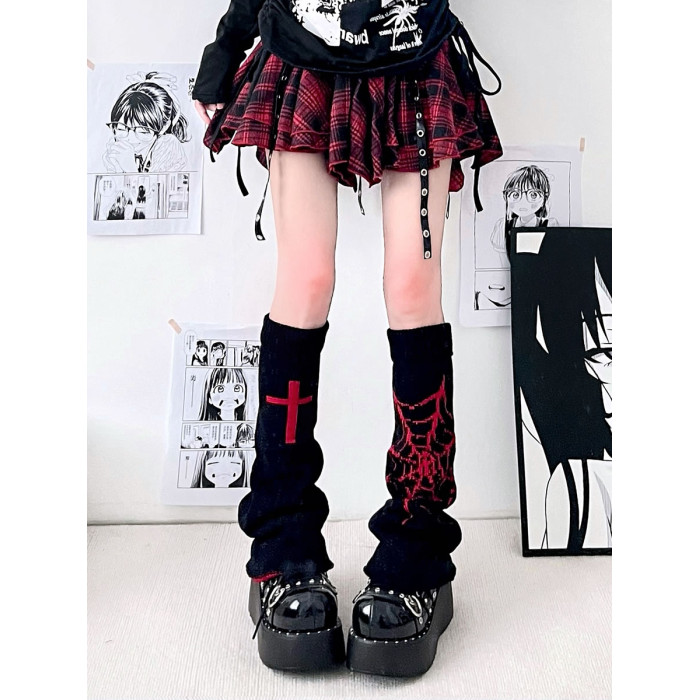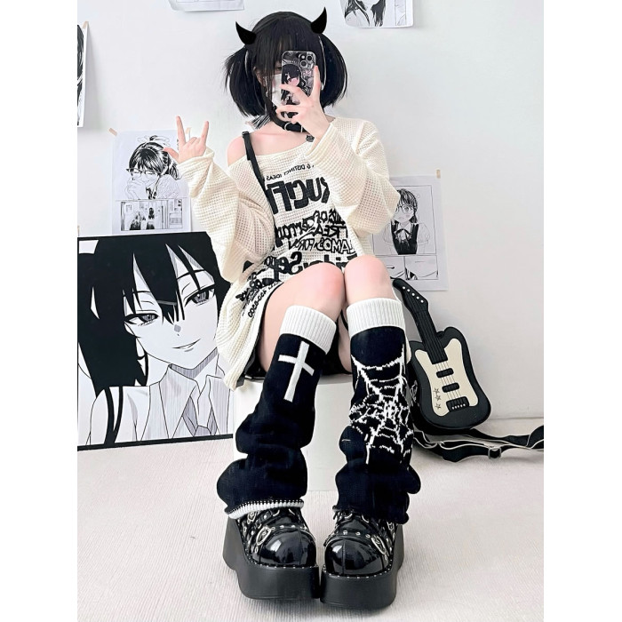 腿套y2k十字架濶腿亞文化蜘蛛網龐克jk辣妹針織喇叭千禧堆堆襪套