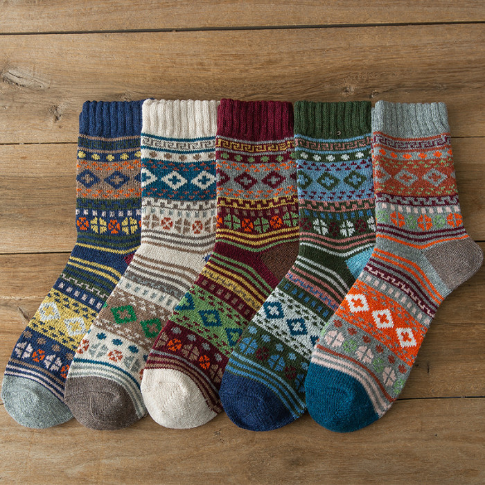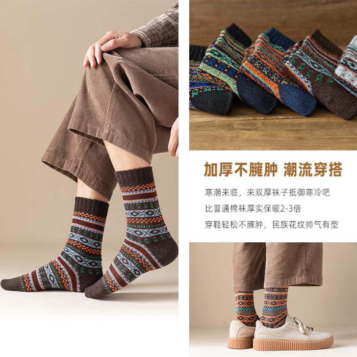 5/10雙復古民族風厚襪子男秋冬季中長襪潮流百搭羊保暖針織絨毛線