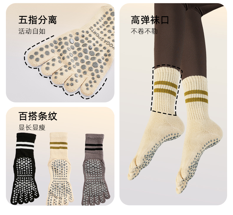 瑜珈襪子防滑專業女秋冬普拉提襪子五指襪2023新款運動防滑中高筒