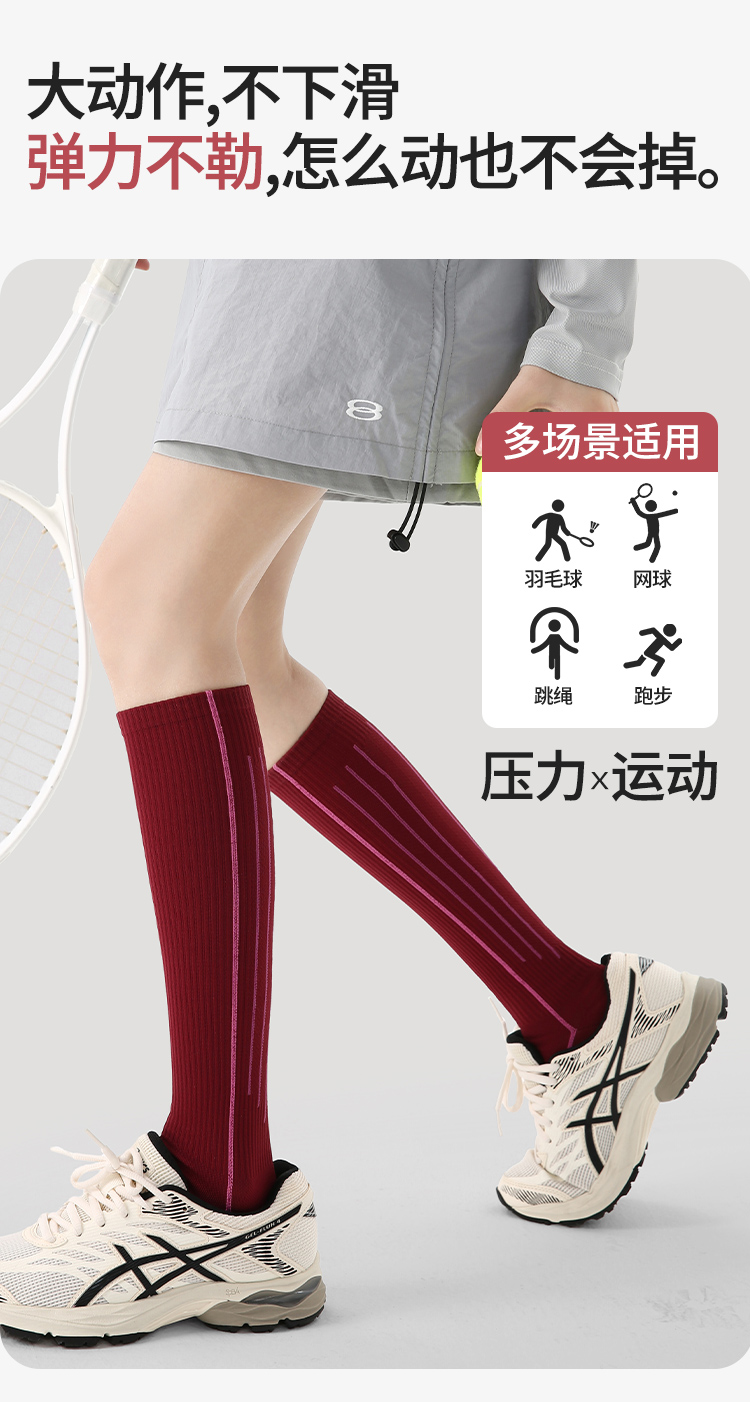 秋冬跳繩徒步騎行登山羽毛球跑步專用壓力襪女長筒襪子專用運動襪