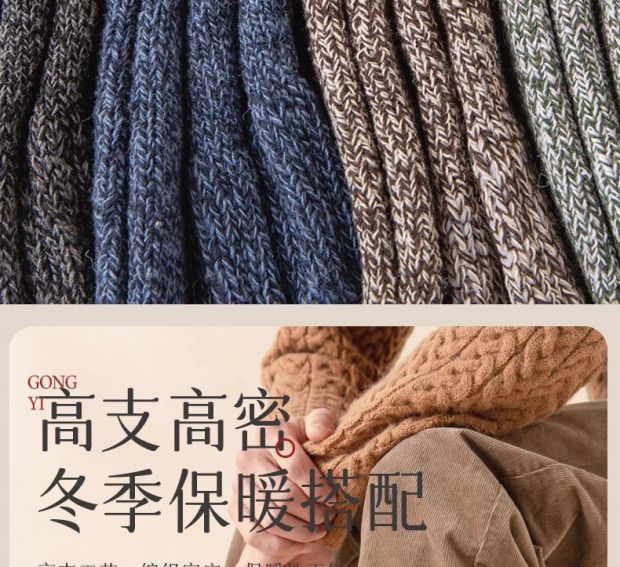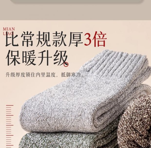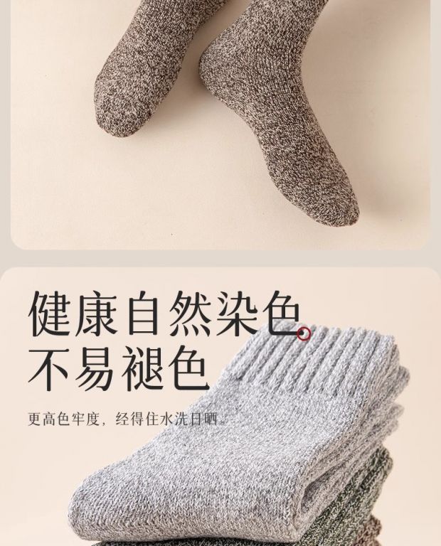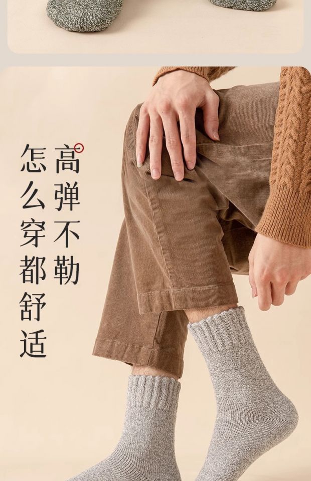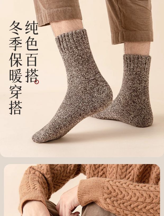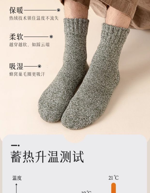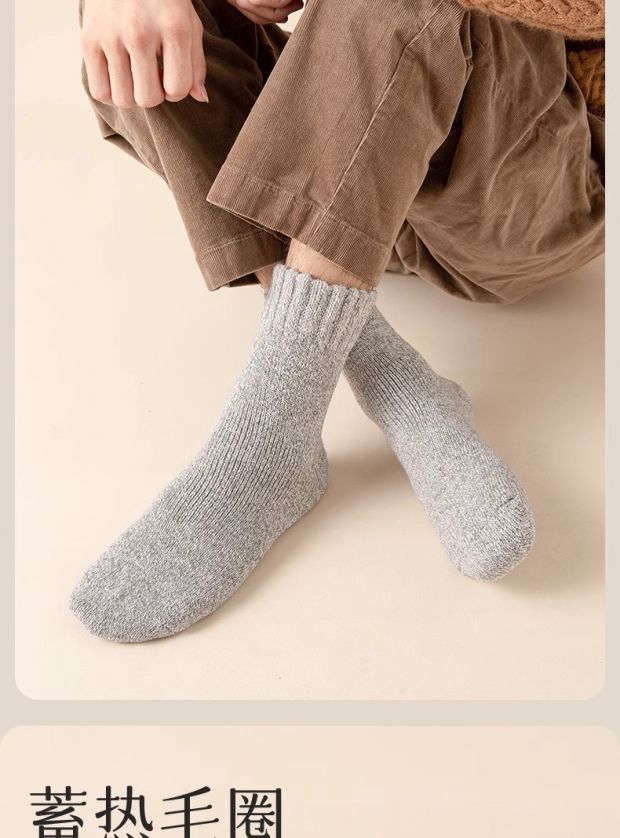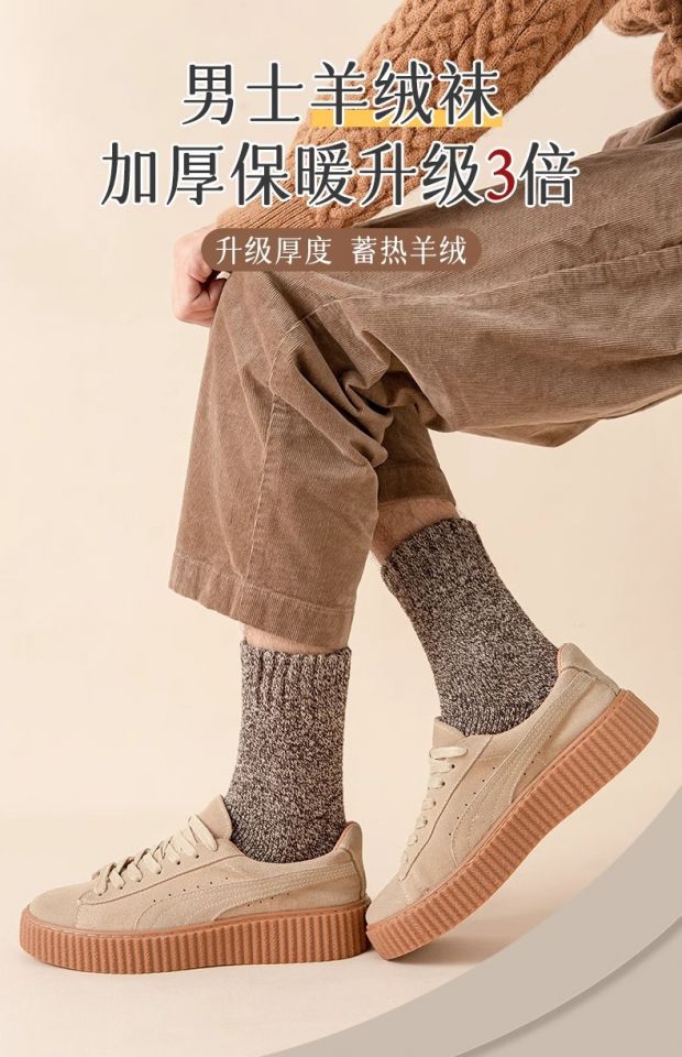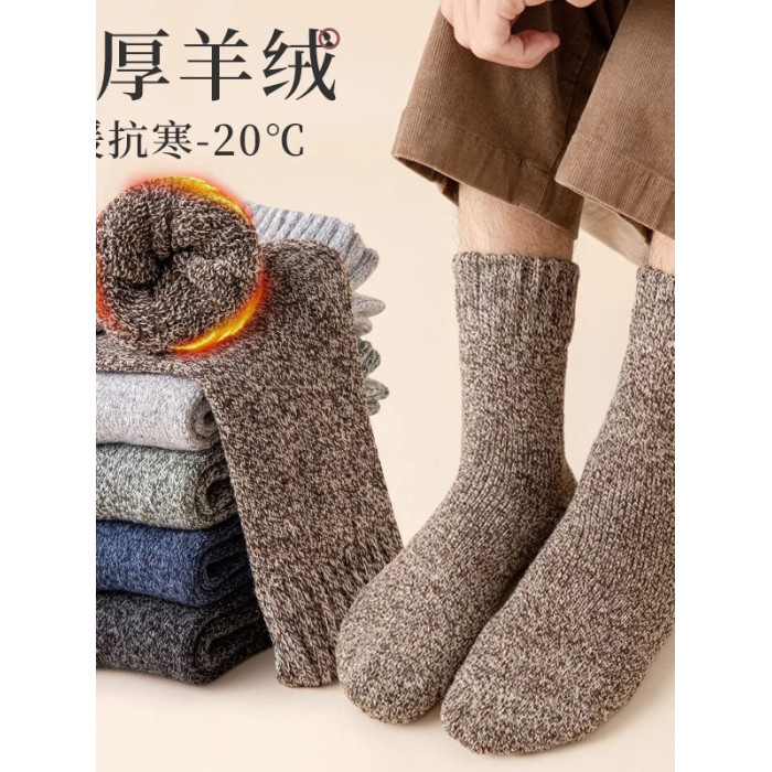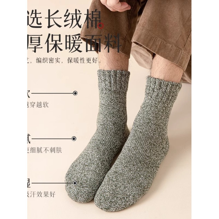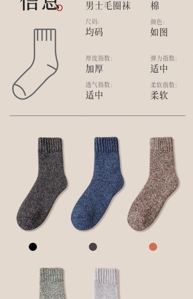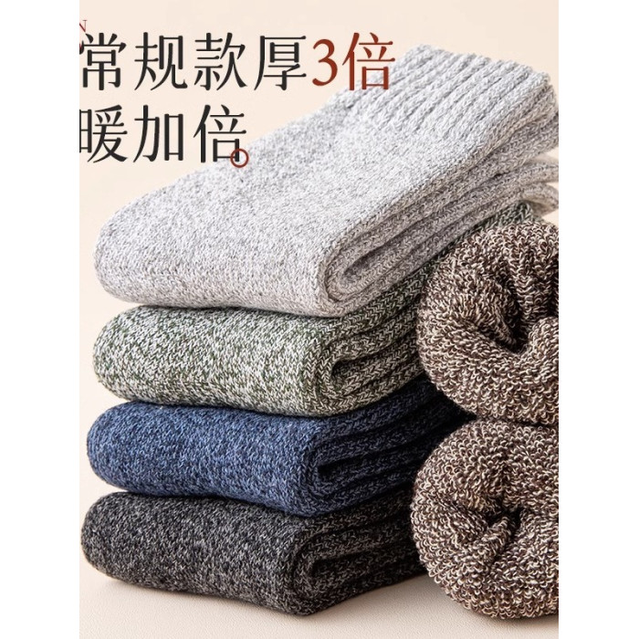 襪子男中筒冬季加絨加厚保暖毛圈襪男士竝線羊絨襪冬天毛巾襪