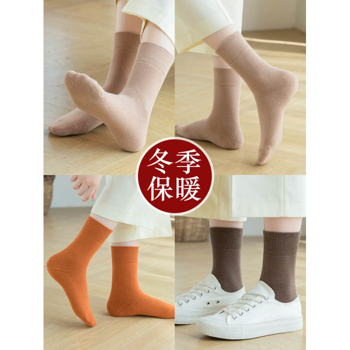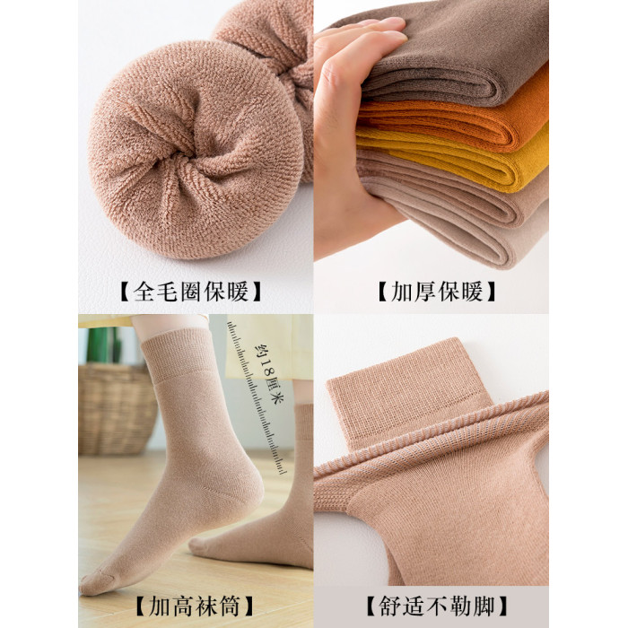 100%純棉長襪子女秋冬季加厚加絨保暖中筒毛巾長筒毛圈睡覺雪地襪