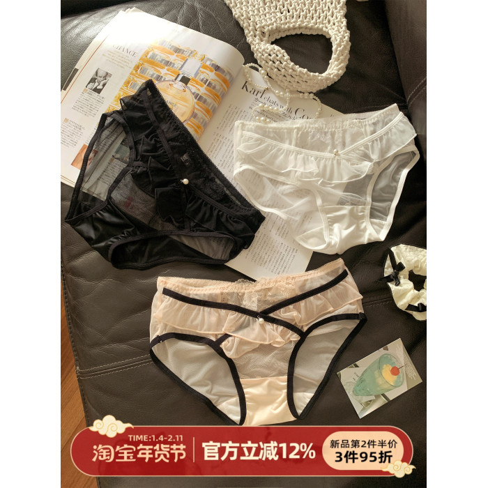 森日和葉法式浪漫純欲風網紗女士三角褲2026新款性感蕾絲內褲女生