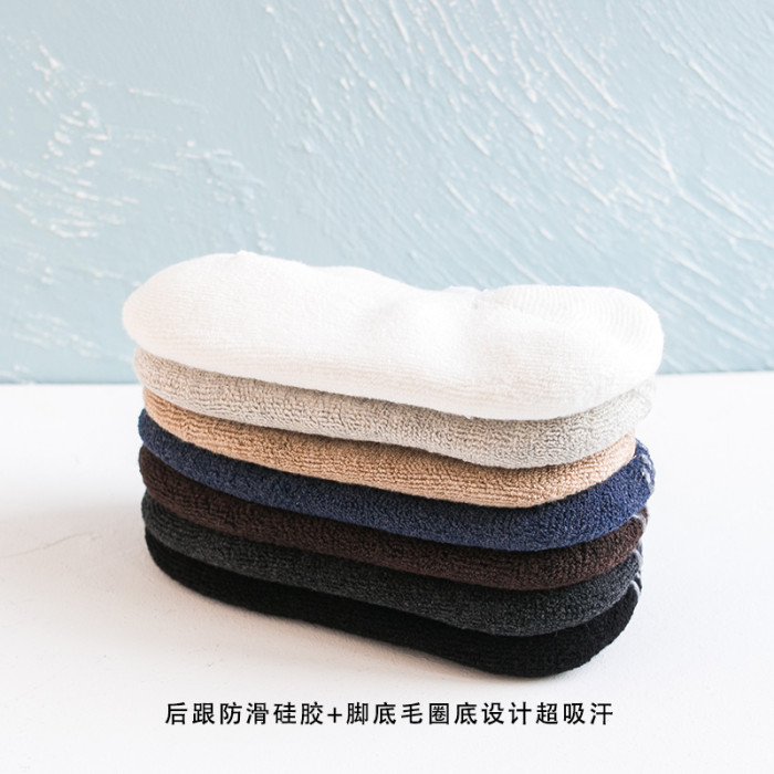 5雙裝男士船襪加厚毛巾底吸汗低幫短襪矽膠防滑隱形淺口襪子春秋