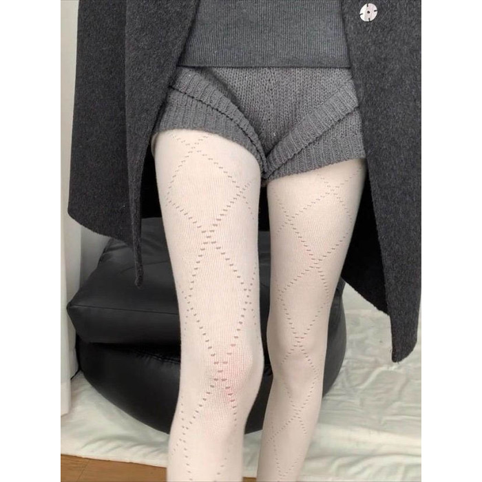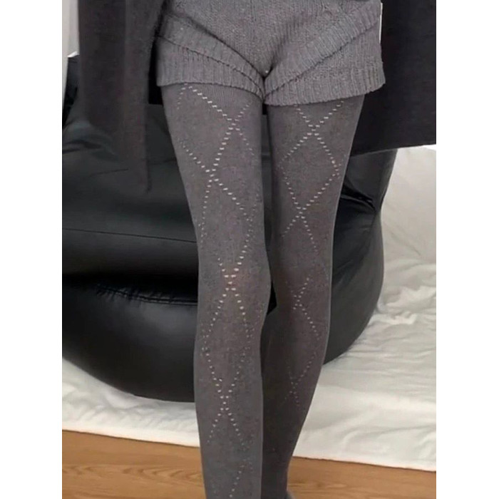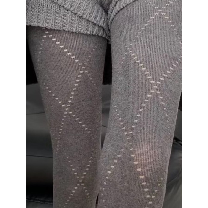 灰色連褲襪miu系秋冬季加厚保暖針織外穿菱格絲襪打底褲襪冬季