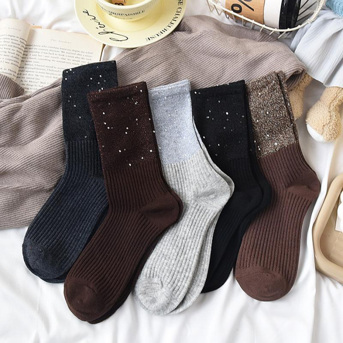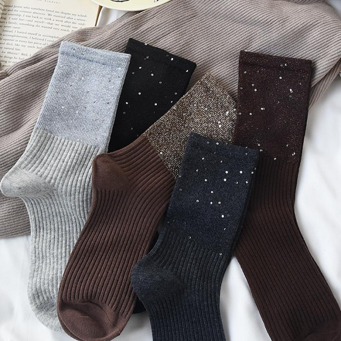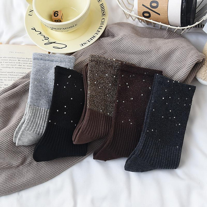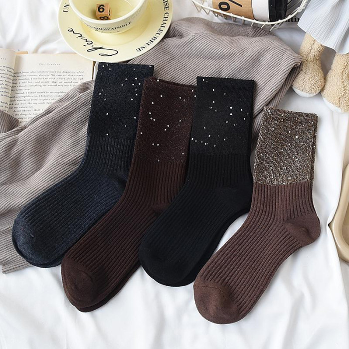 襪子女秋冬中筒襪滿天星亮片百搭洋氣個性中筒純棉外穿堆堆飾品襪