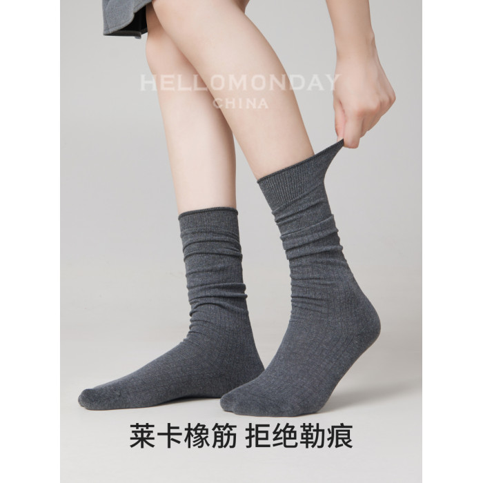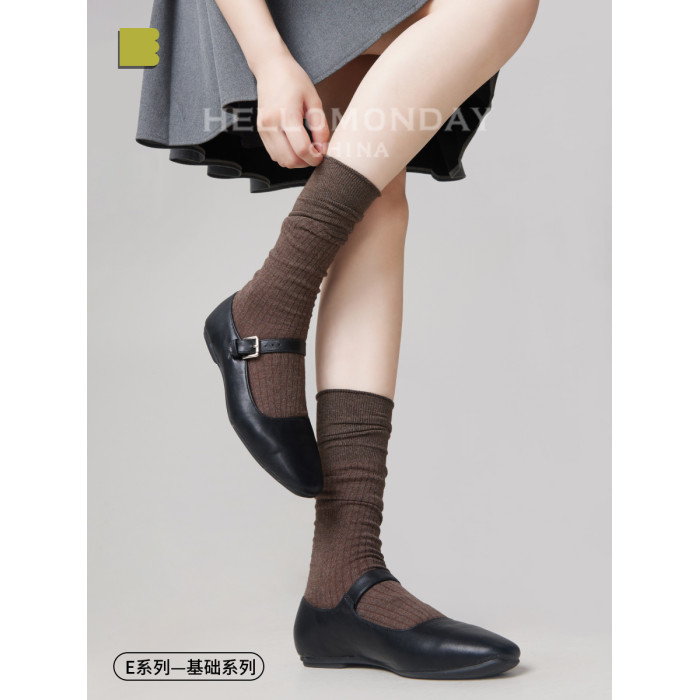 襪子女春秋咖啡色堆堆小腿襪配瑪麗珍鞋中筒棉襪美拉德miu系夏季