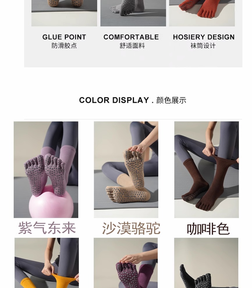 WKUW專業瑜珈襪子女五指中筒防滑襪分趾小腿襪健身運動普拉提長襪