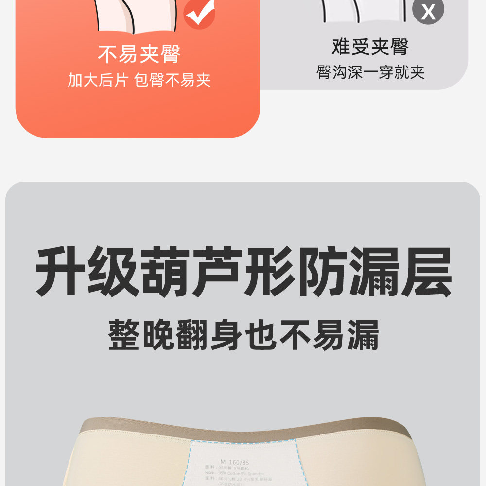 蝶安芬生理內褲女士純棉7a級抗菌無痕a類姨媽月經期襠部加長防漏