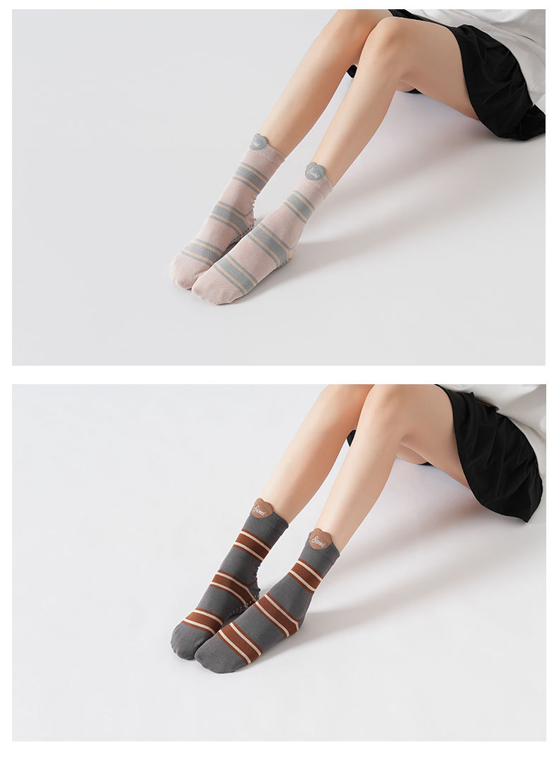 XY0862花色折釦條紋瑜珈普拉提襪復古刺綉地板襪學院風日系愛心款