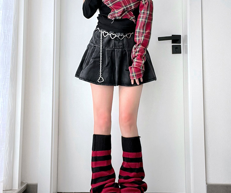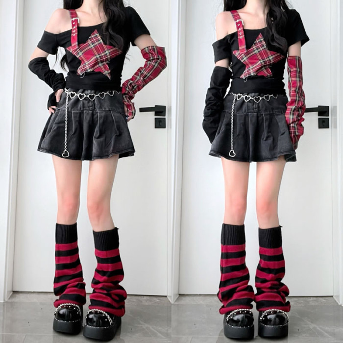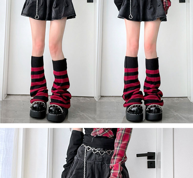 黑紅條紋亞文化個性喇叭襪套ins百搭y2k澁穀辣妹亞比針織保暖腿套