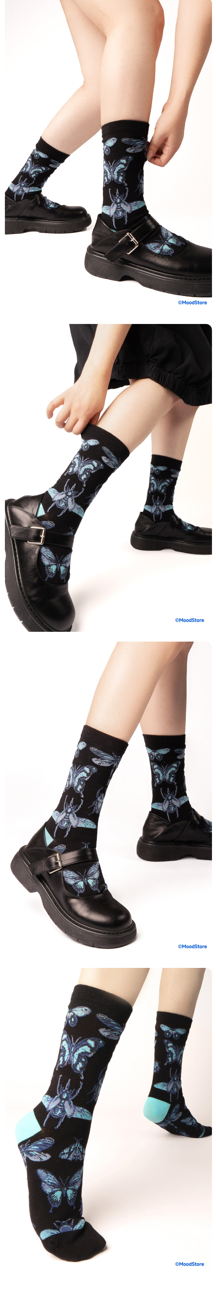 煩惱商店原創設計蝴蝶瑪麗珍中筒小腿襪少女甜酷美術y2k純棉