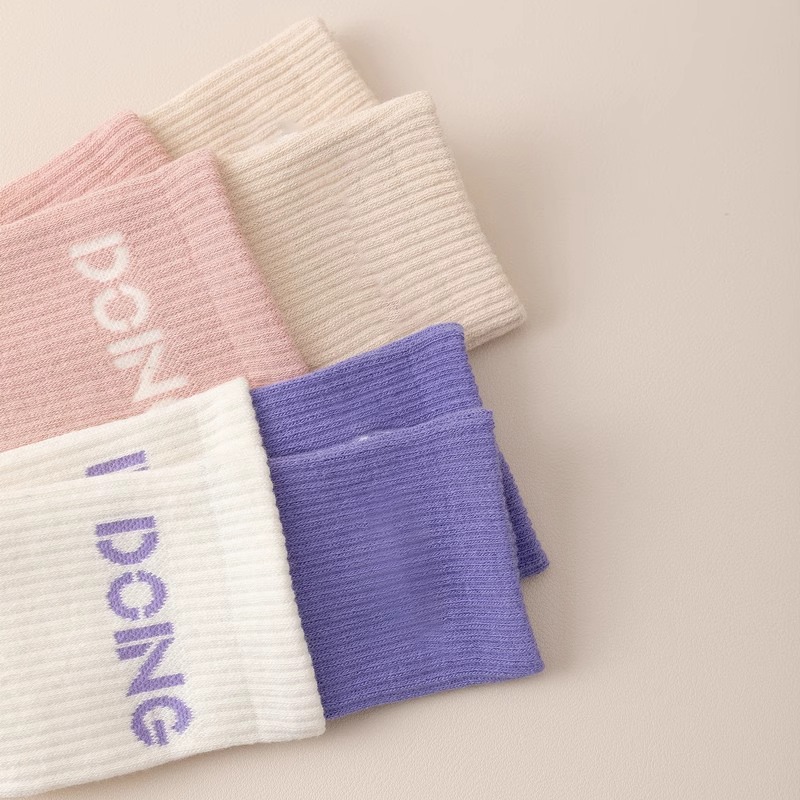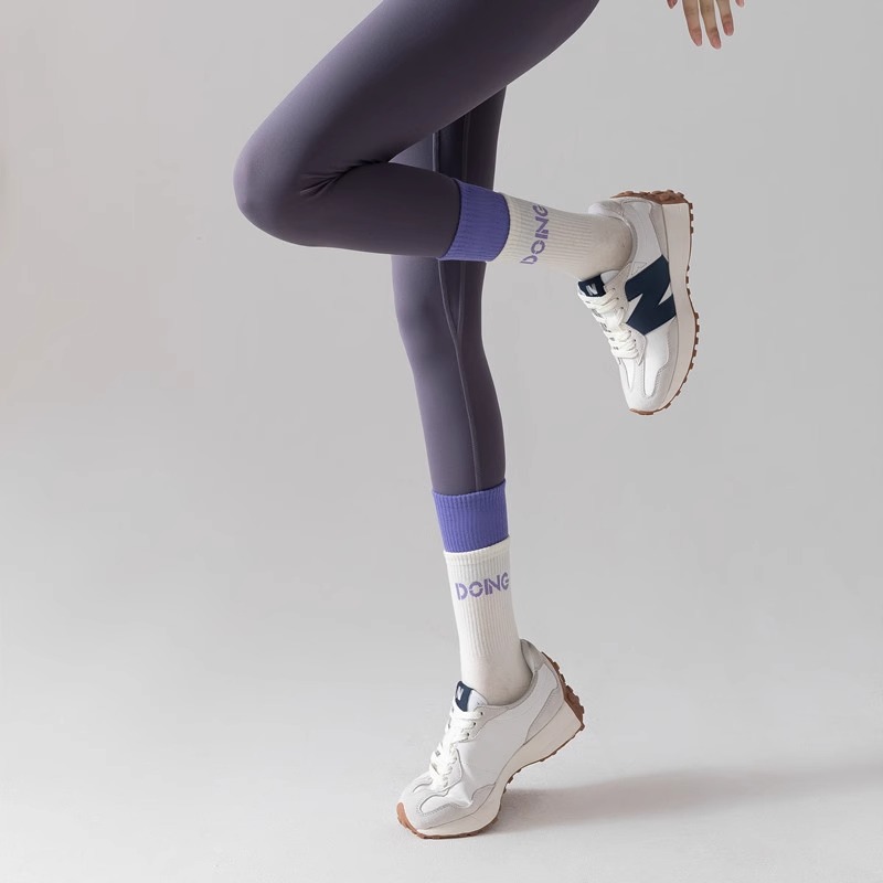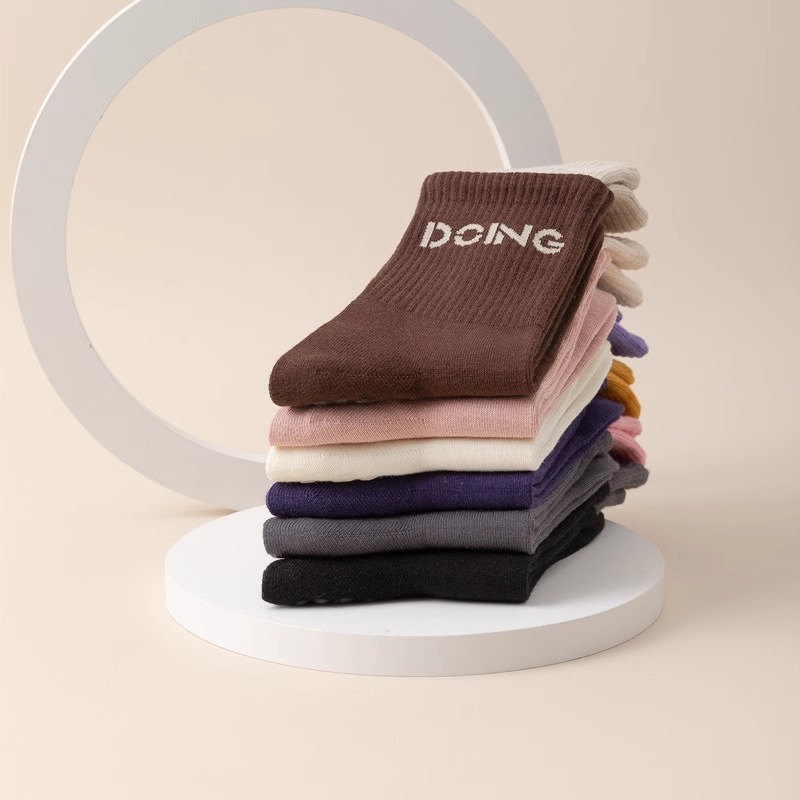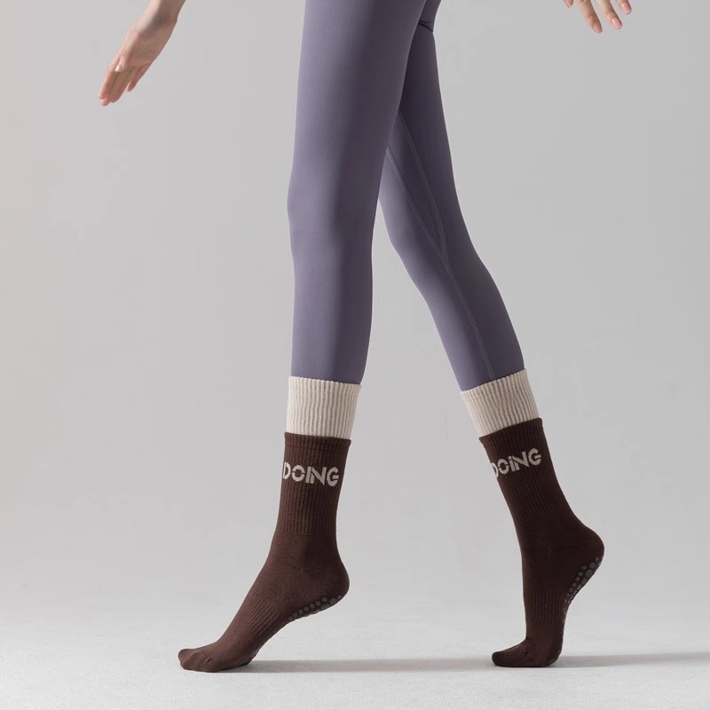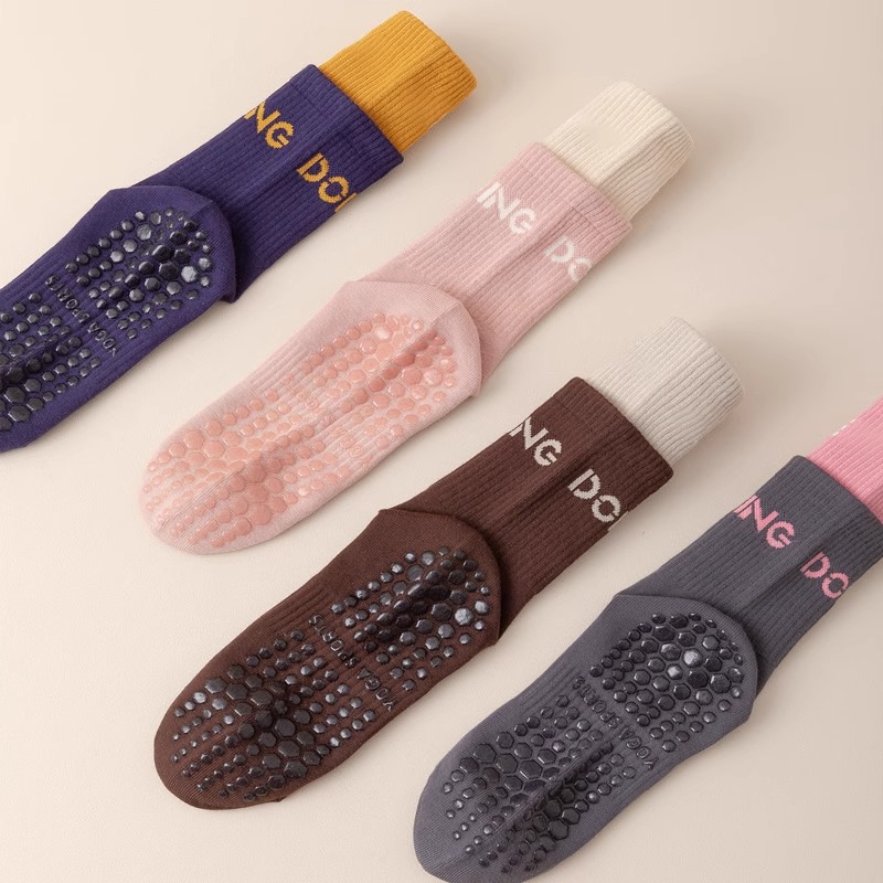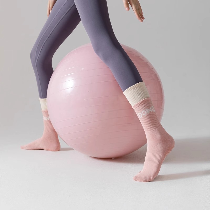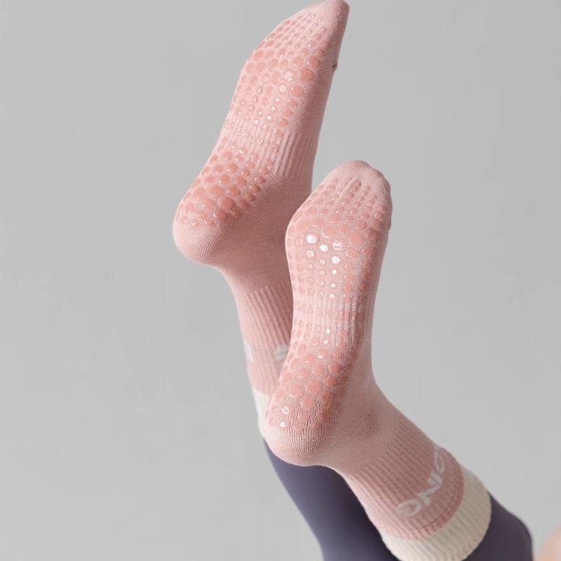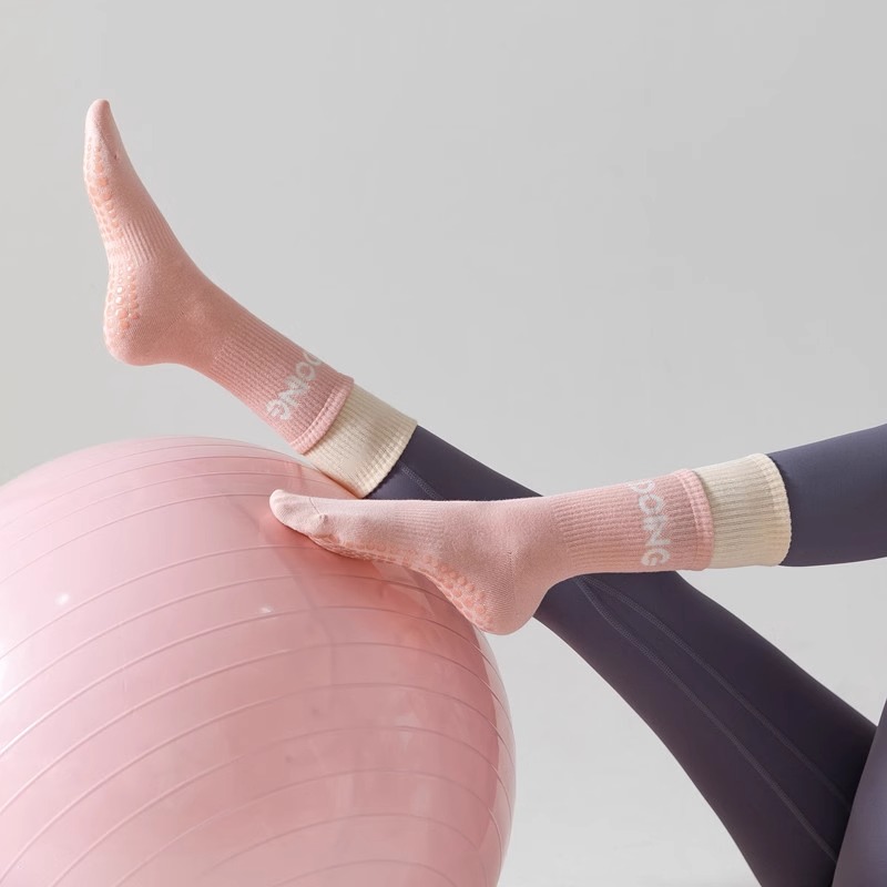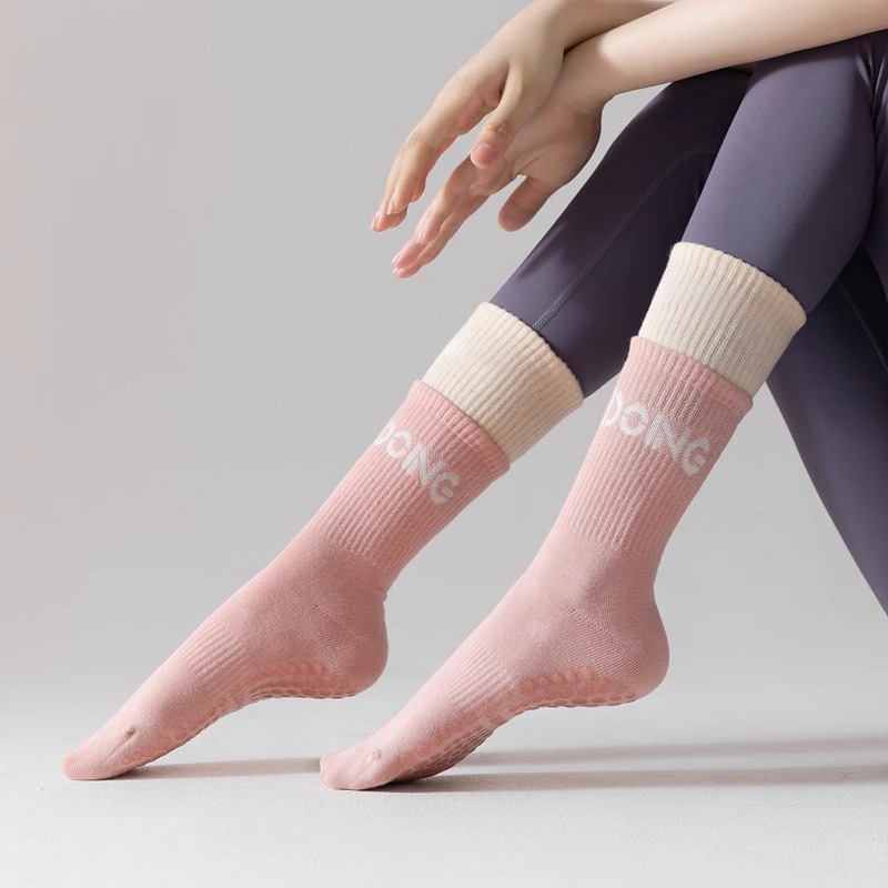 矽膠防滑瑜珈襪子女拼色中筒襪純棉室內健身普拉提高筒運動休閒襪