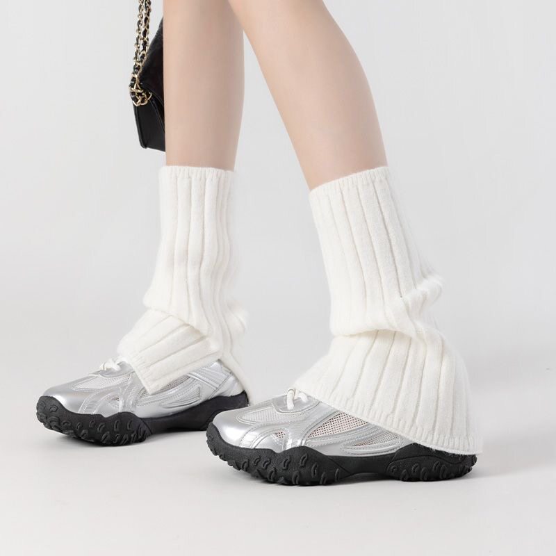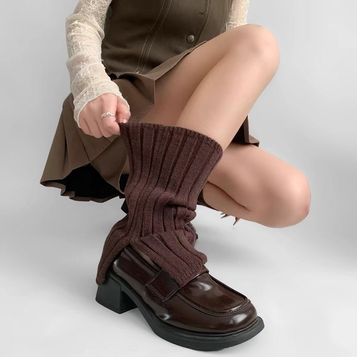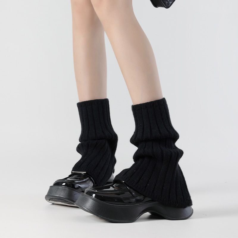 灰色襪套堆堆襪秋冬防滑微喇叭型開叉腿套配鯊魚褲加厚保暖遮小腿