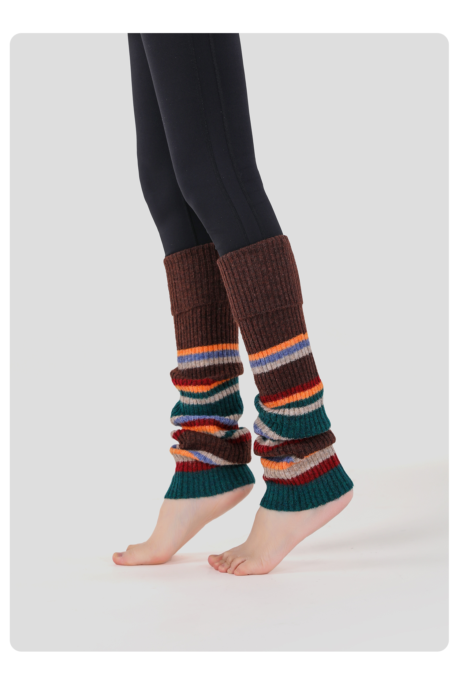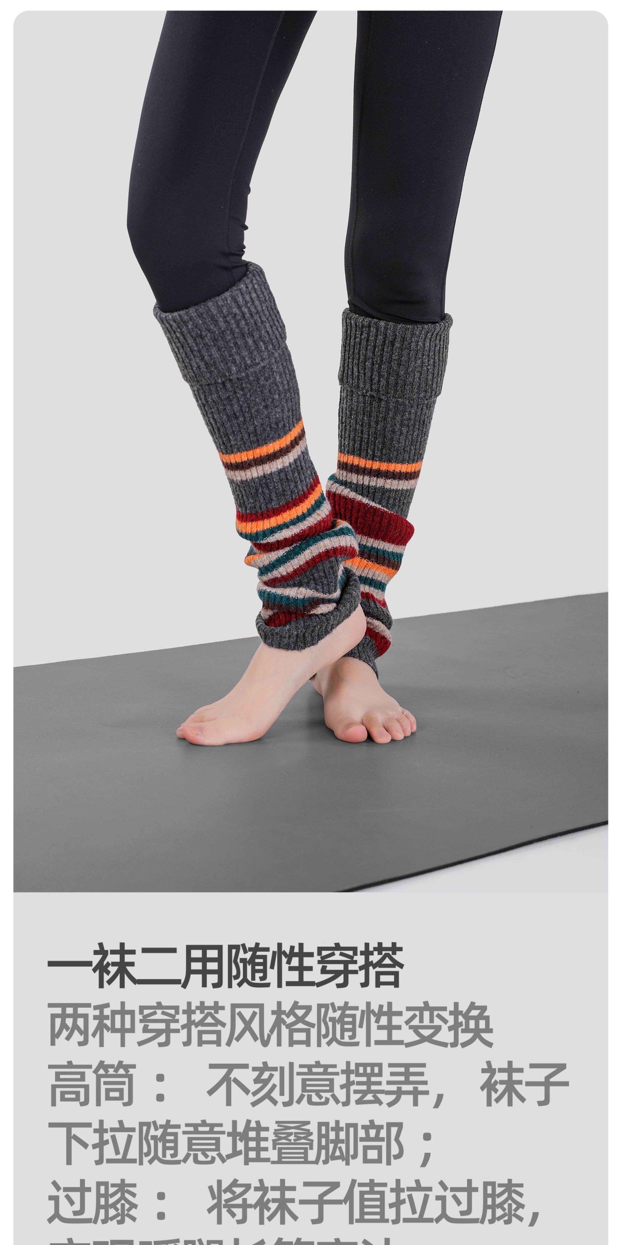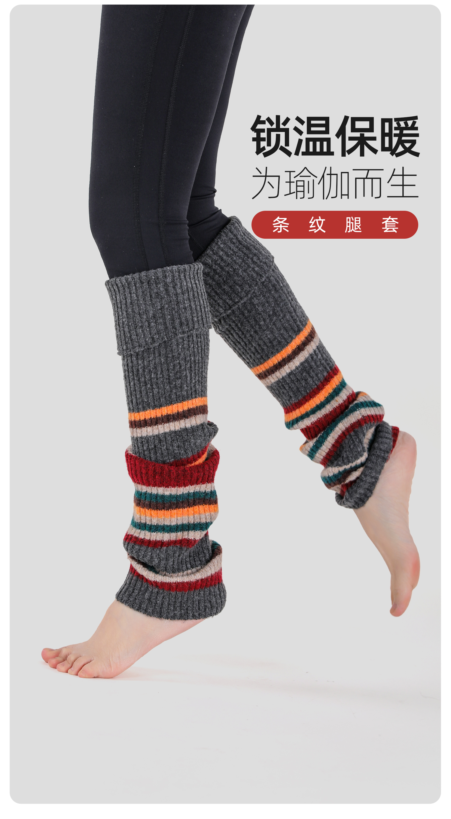 【羊毛】MEIKAN瑜珈襪套撞色條紋襪套針織襪子顯瘦羊毛喇叭腿套