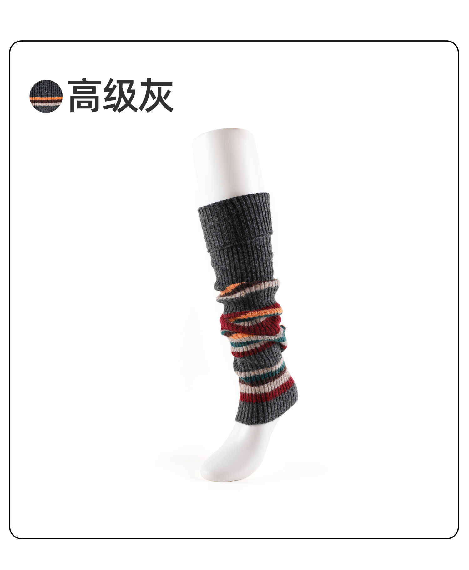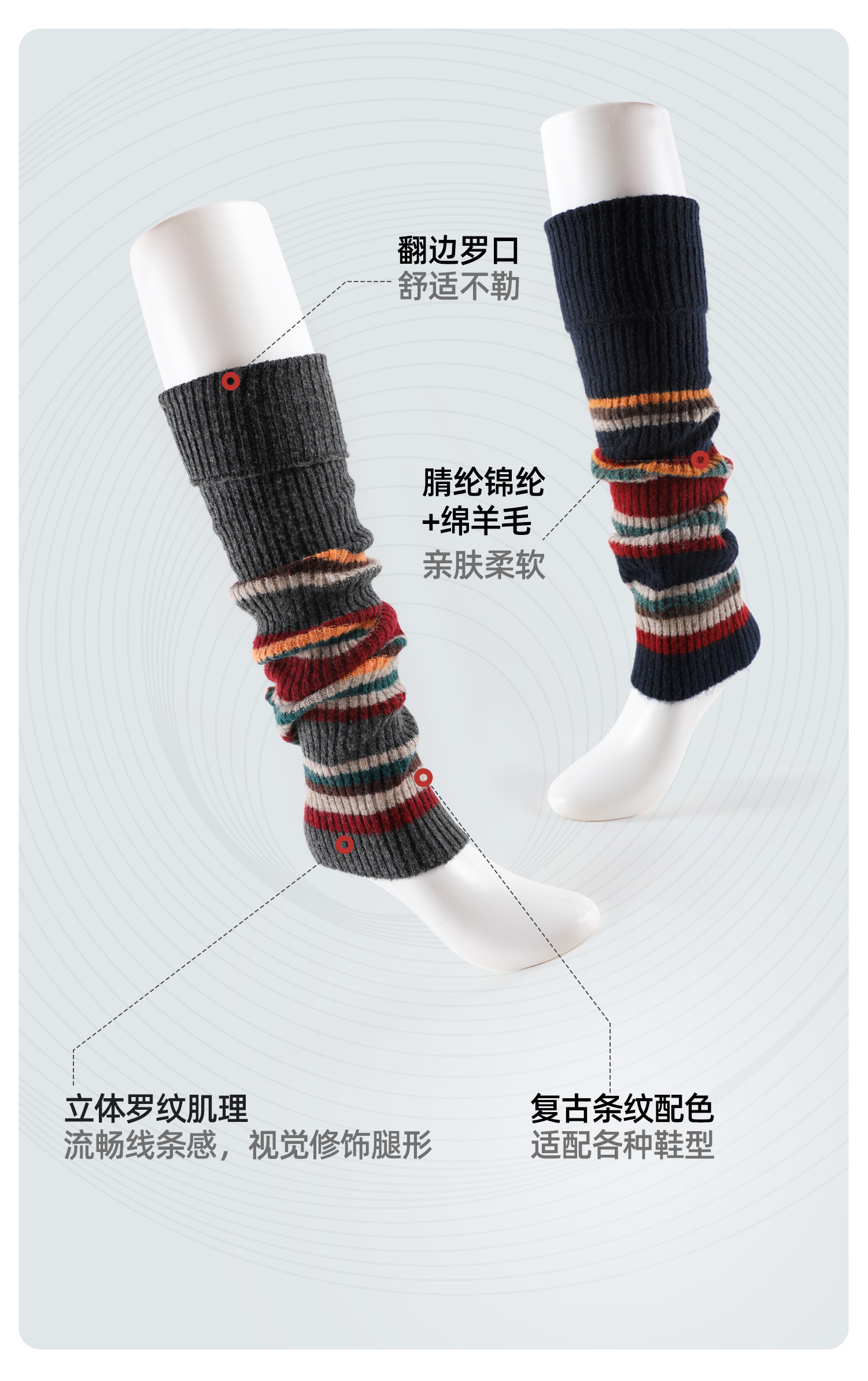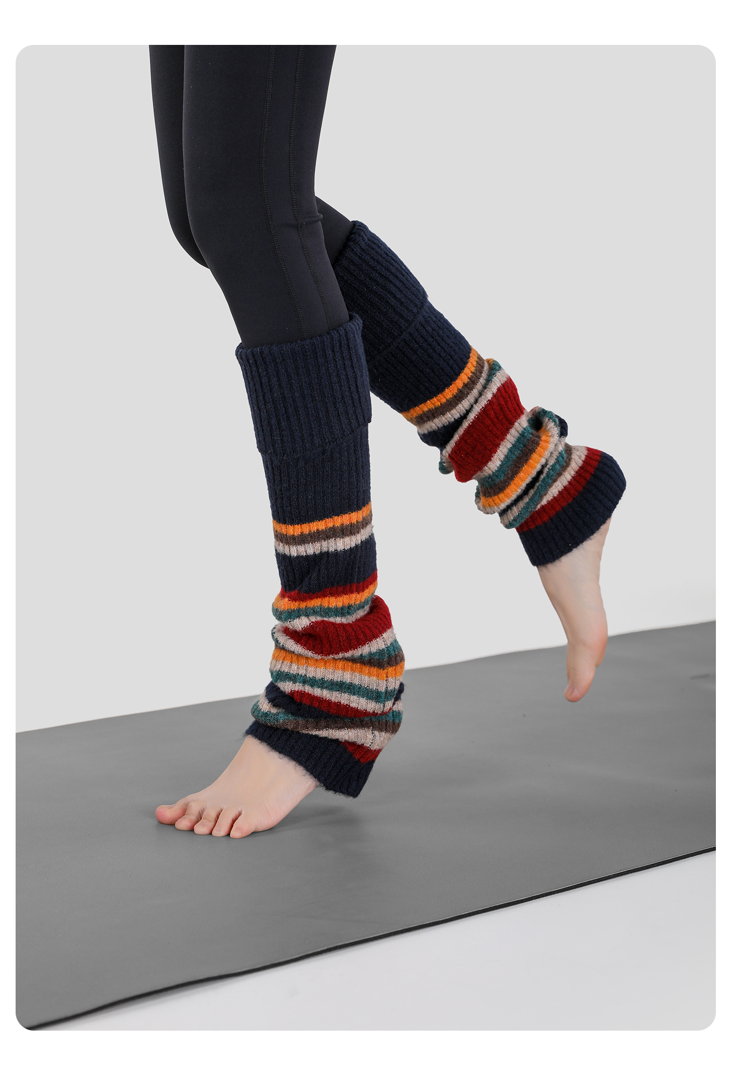 【羊毛】MEIKAN瑜珈襪套撞色條紋襪套針織襪子顯瘦羊毛喇叭腿套