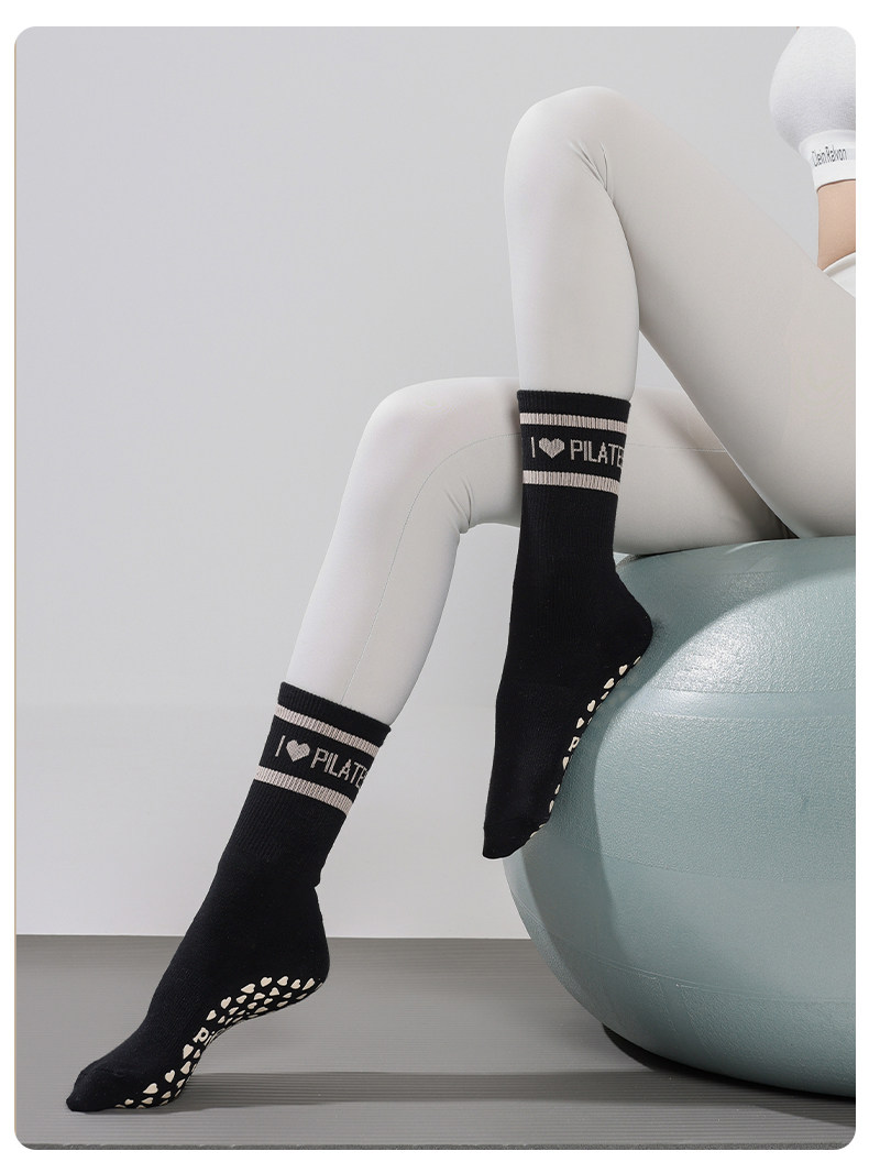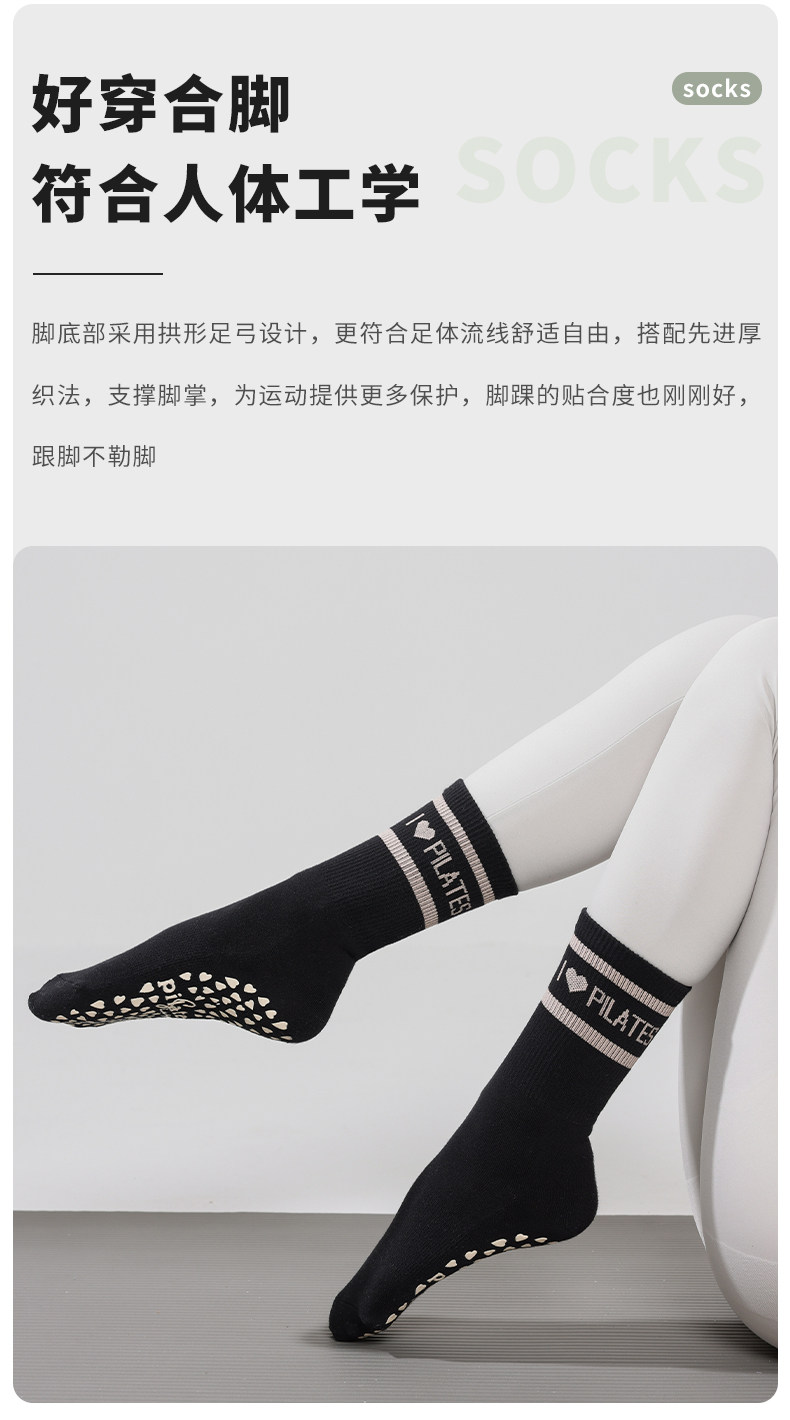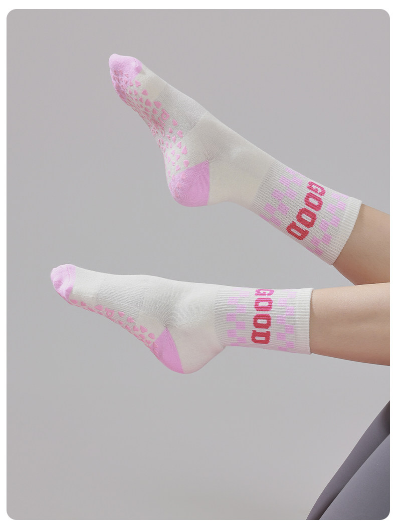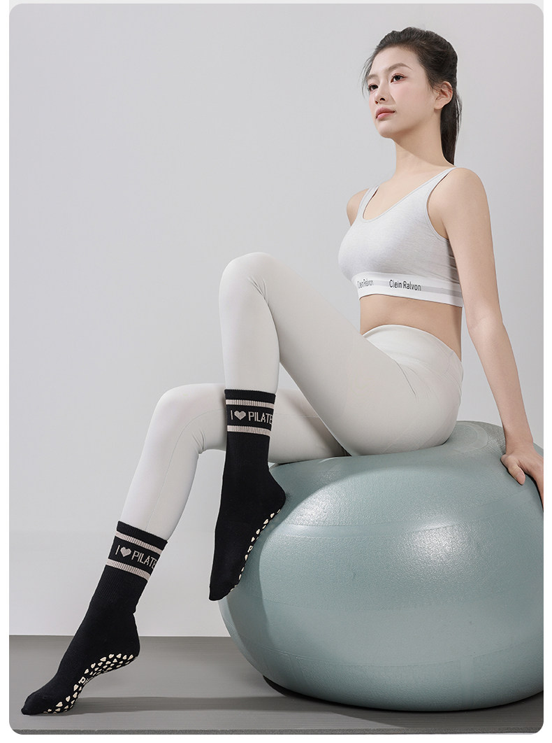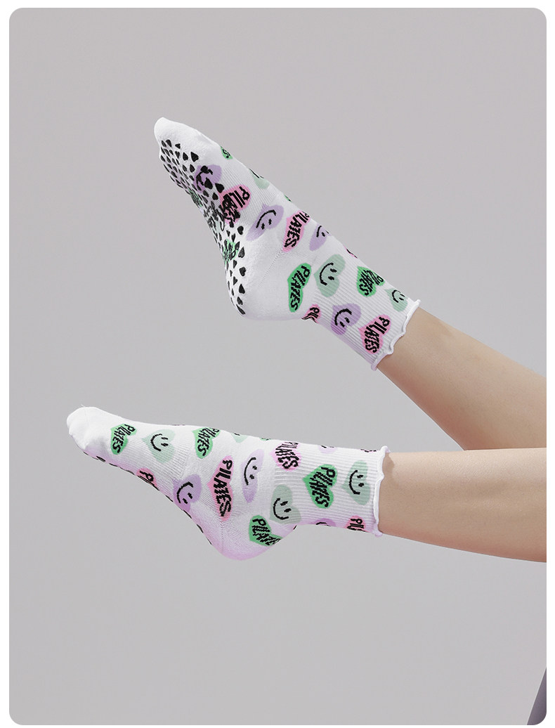 瑜珈襪子防滑專業女普拉提專用運動健身室內笑臉防滑點膠中筒襪