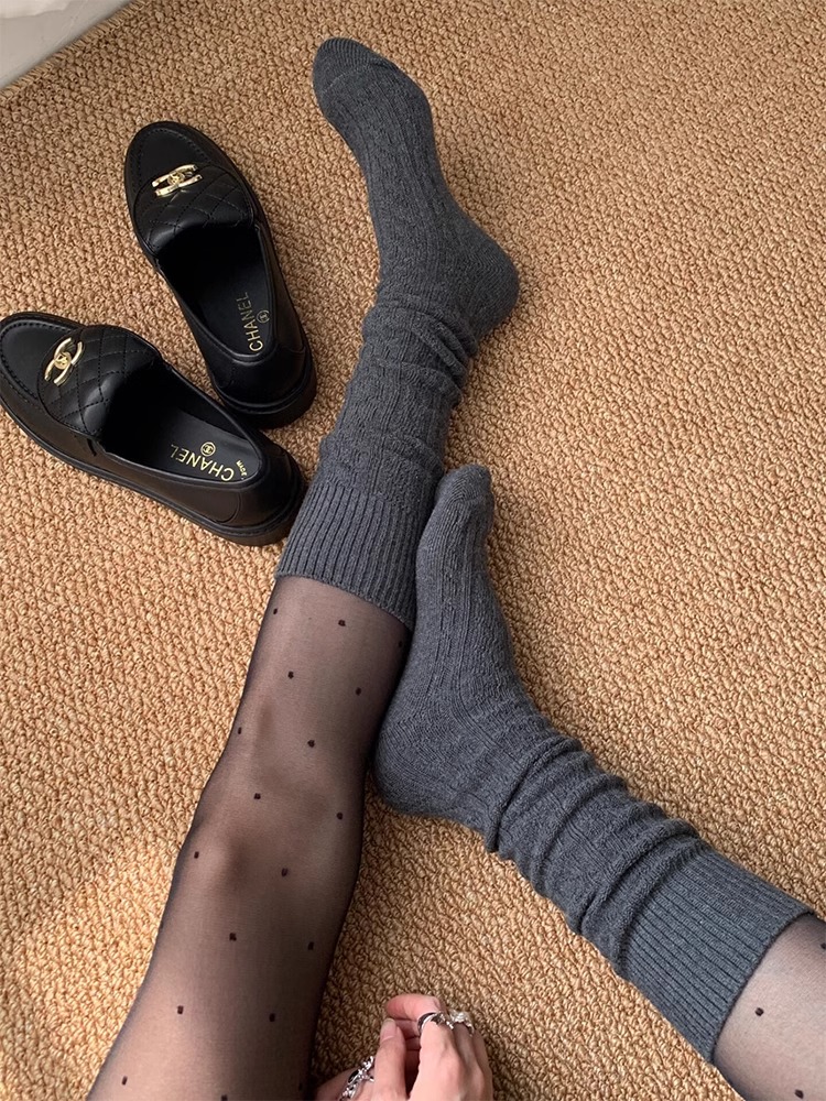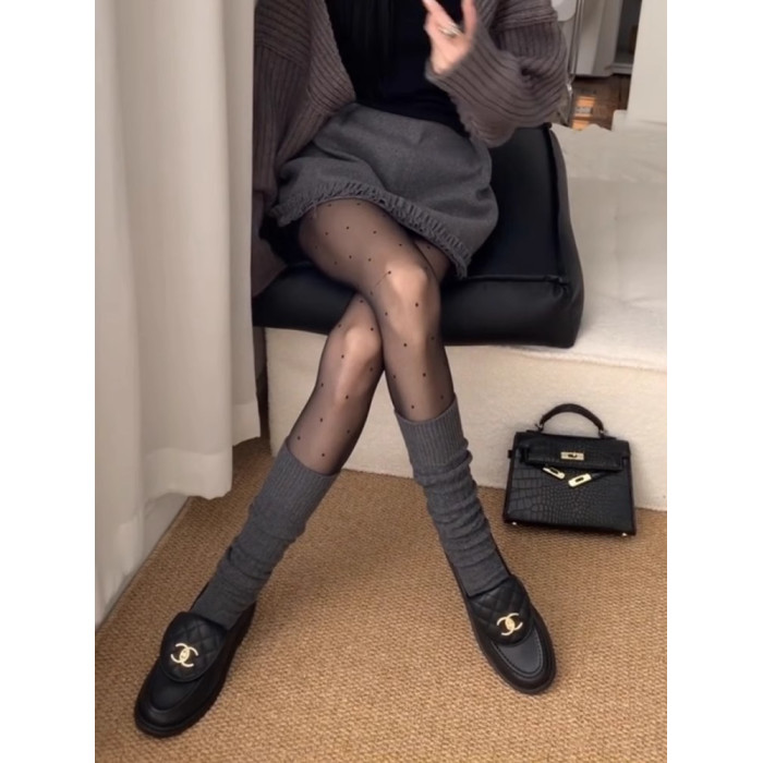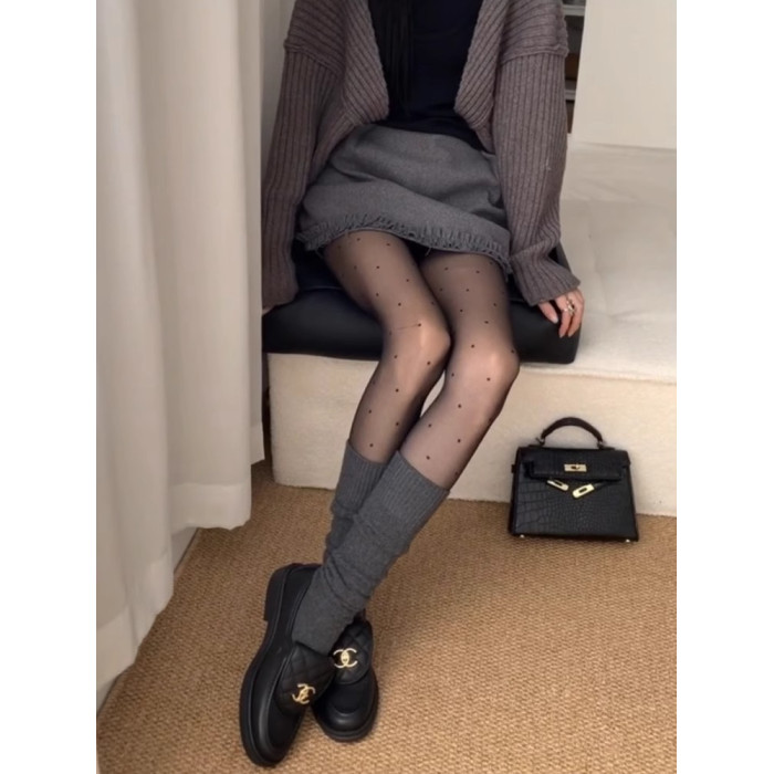 波點黑絲+堆堆襪,YYDS!春秋高級感的灰白黑色系穿搭 誰不愛啊