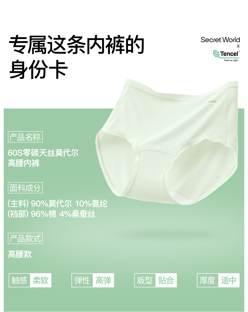 莫代爾內褲女款純棉高腰2025新款加長襠益生菌無痕10A抗菌三角褲