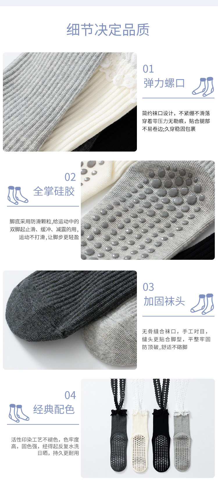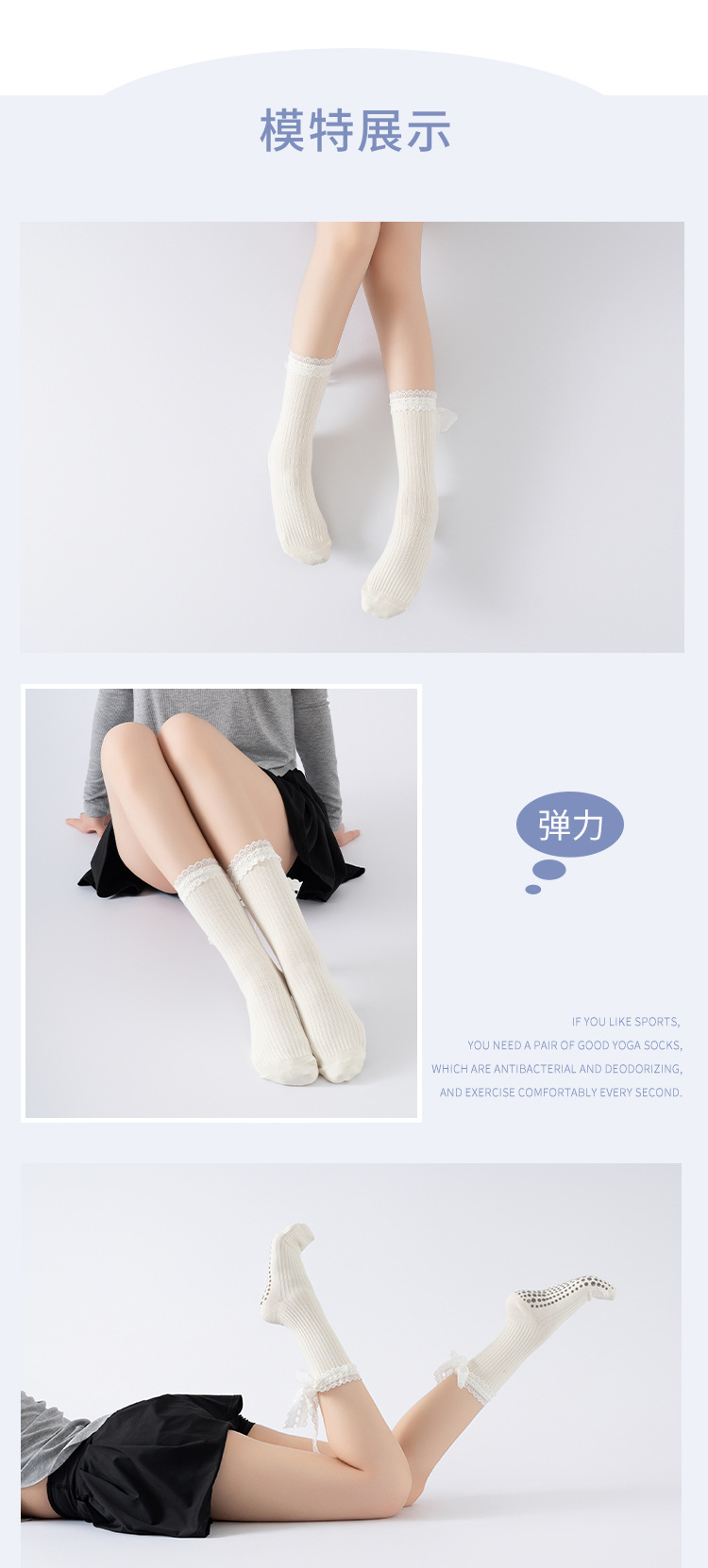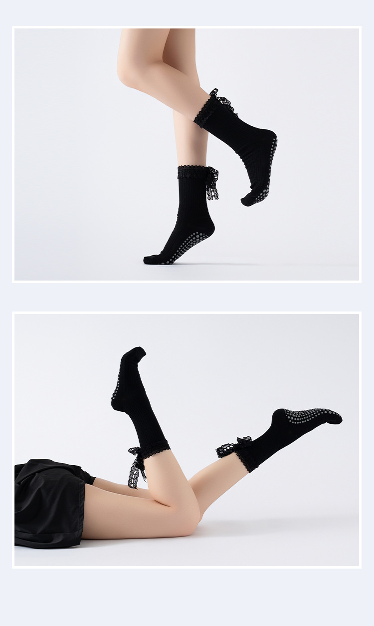 adiar蕾絲邊瑜珈襪子女防滑專業跑步運動襪中筒普拉提訓練小腿襪