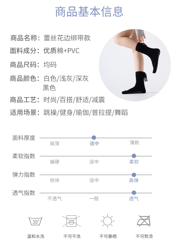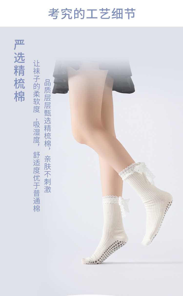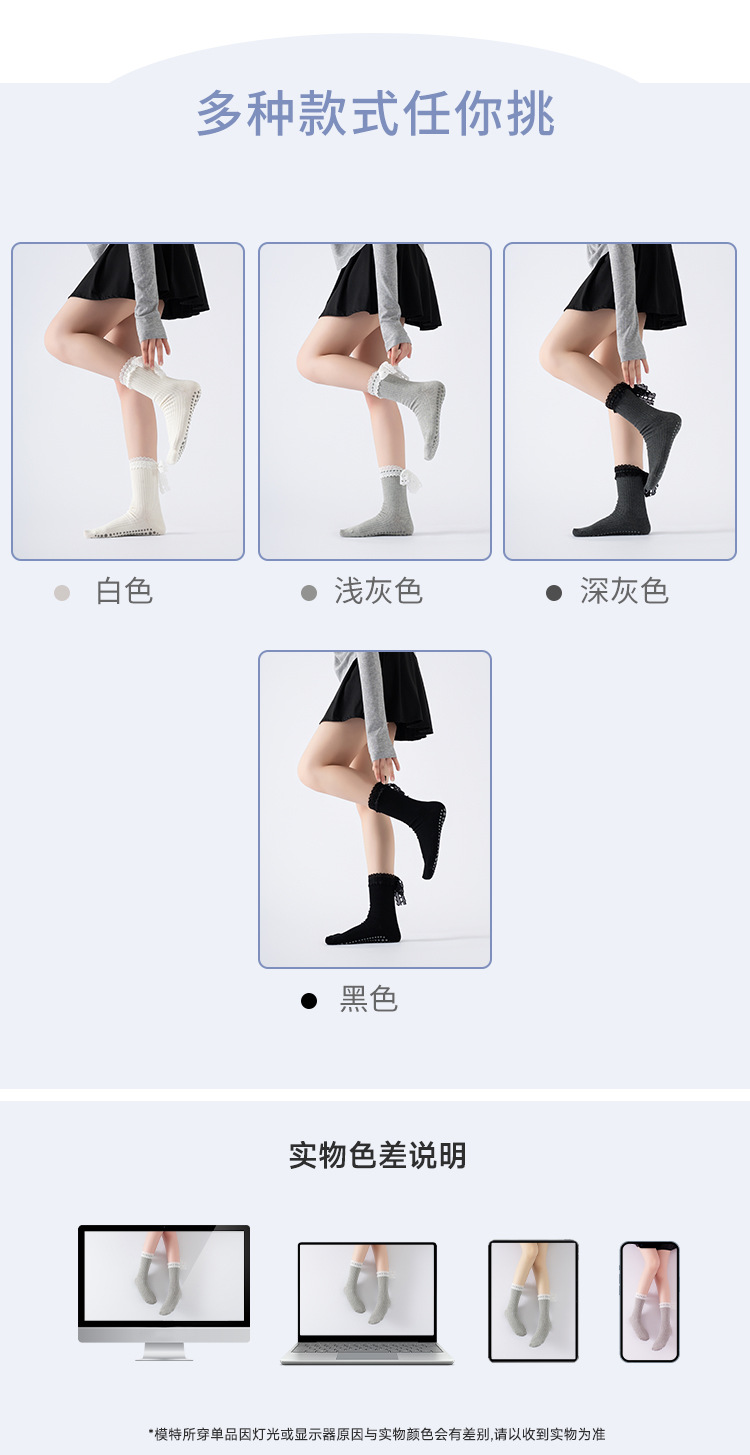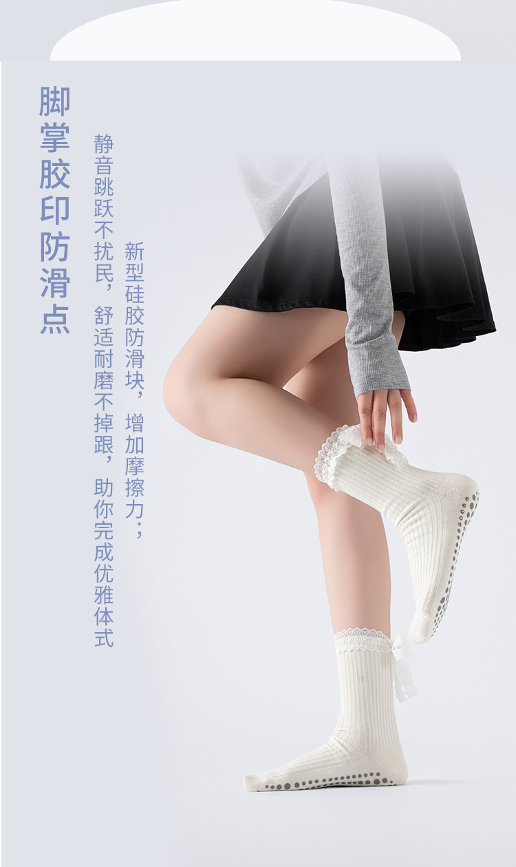 adiar蕾絲邊瑜珈襪子女防滑專業跑步運動襪中筒普拉提訓練小腿襪