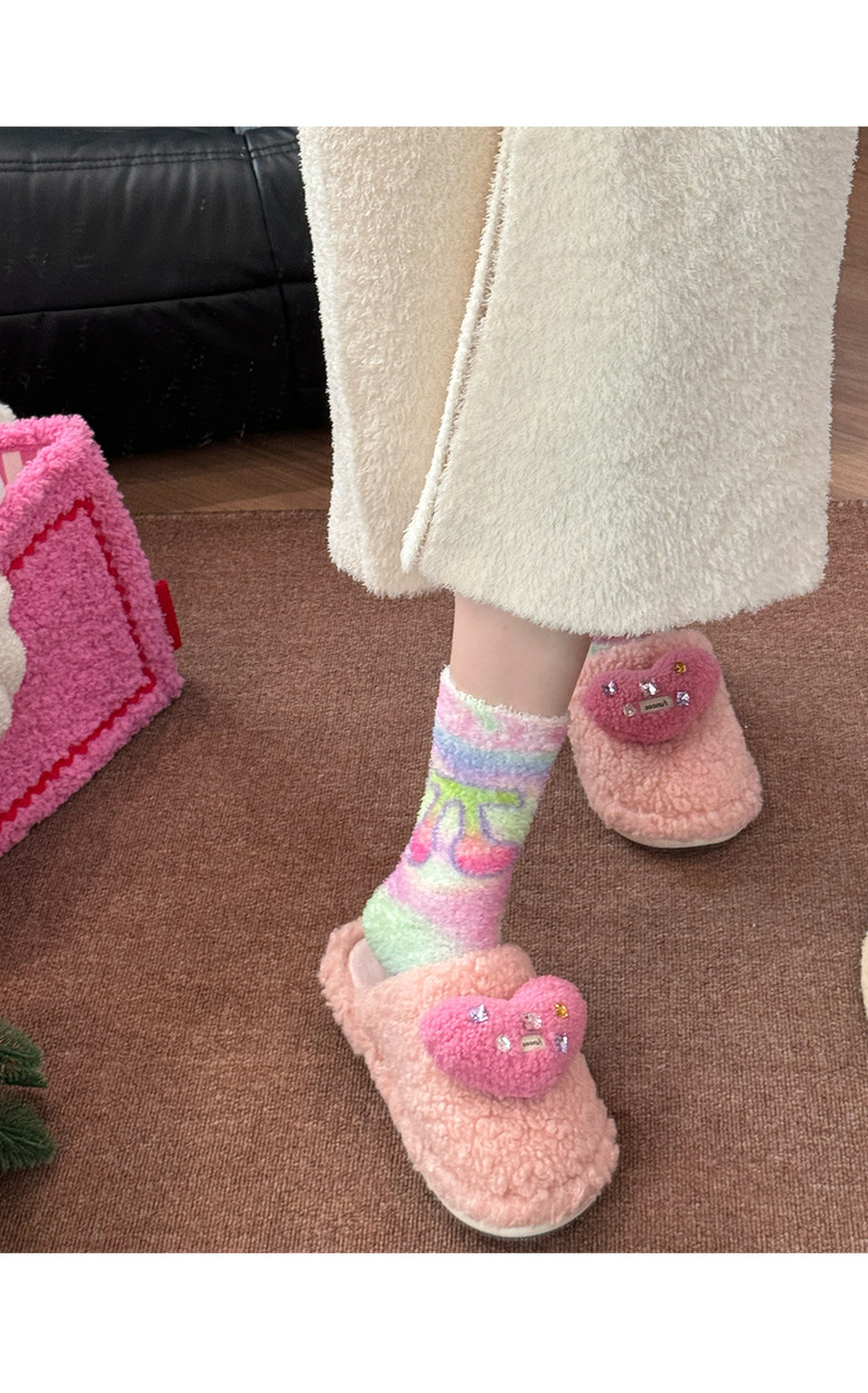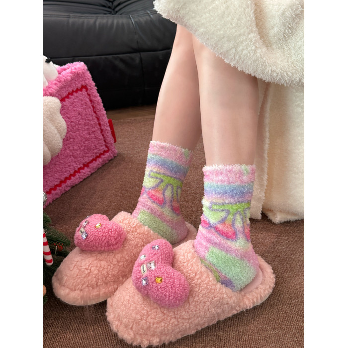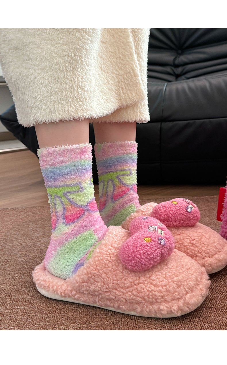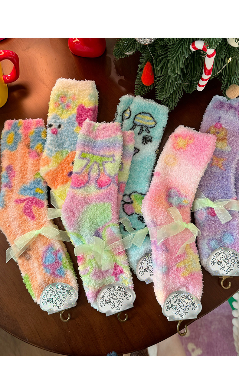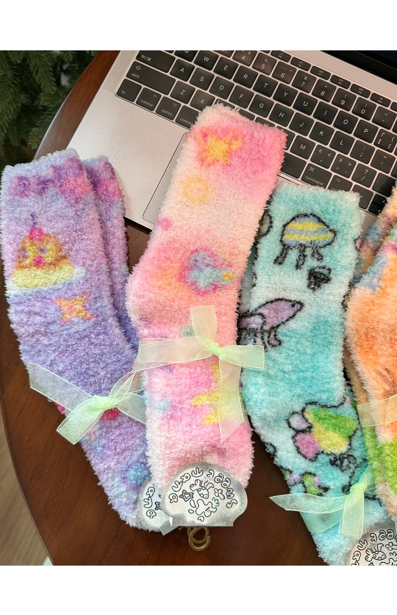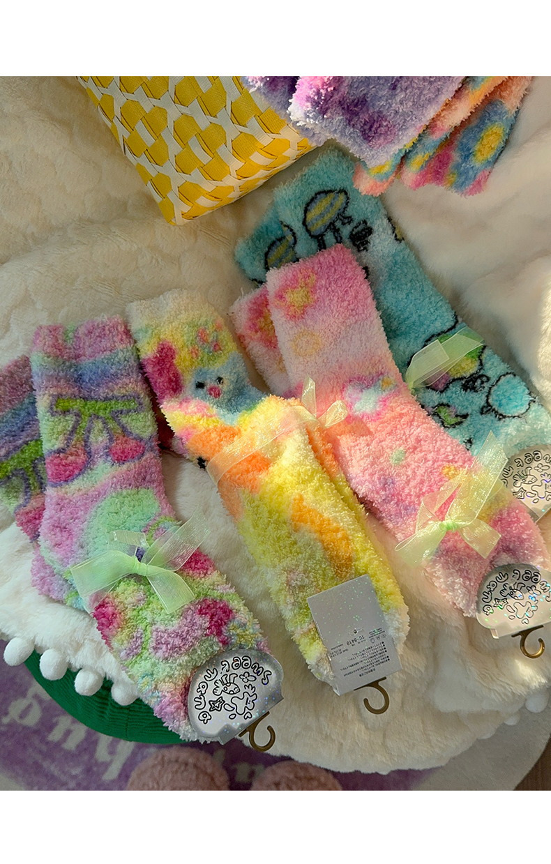 小衆個性紥染珊瑚絨襪子女中筒襪加厚保暖地板襪睡眠襪可愛創意