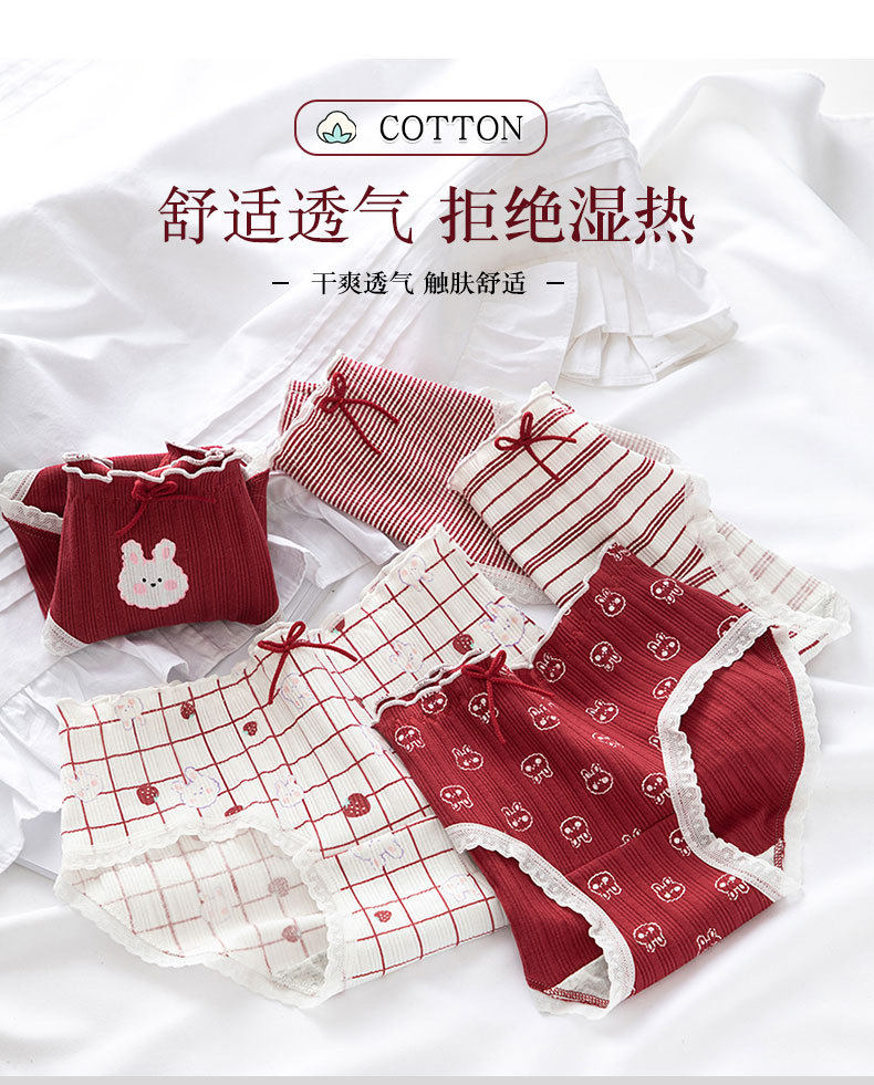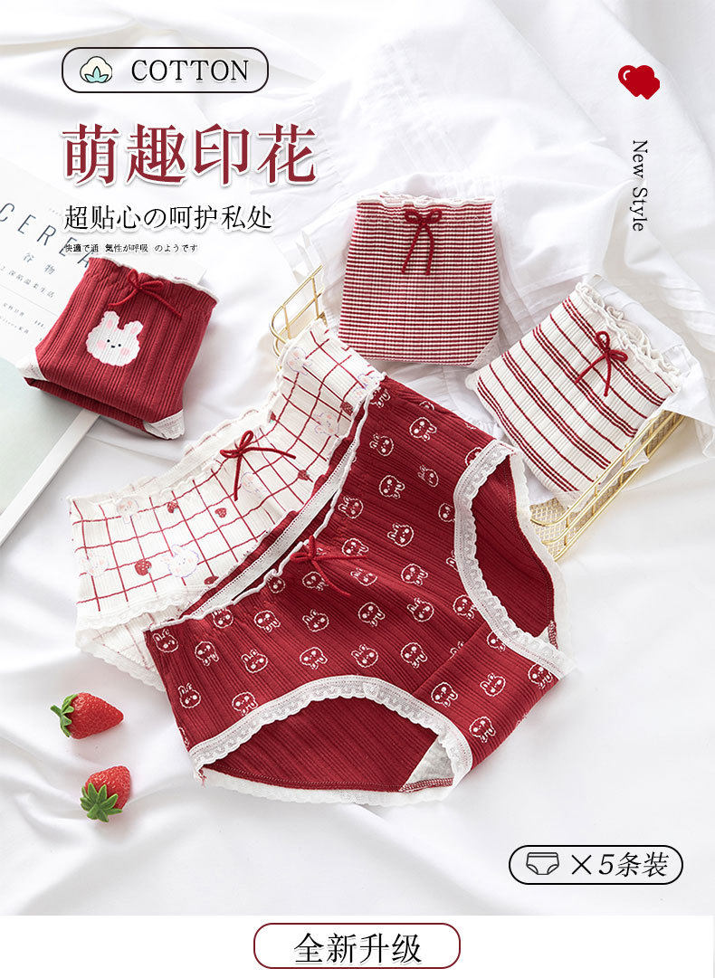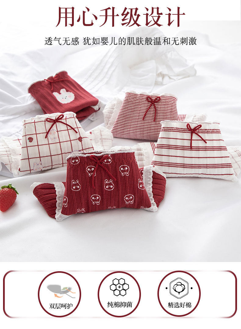 純棉女士內褲女全棉抗菌襠少女學生透氣中腰日系可愛草莓三角短褲