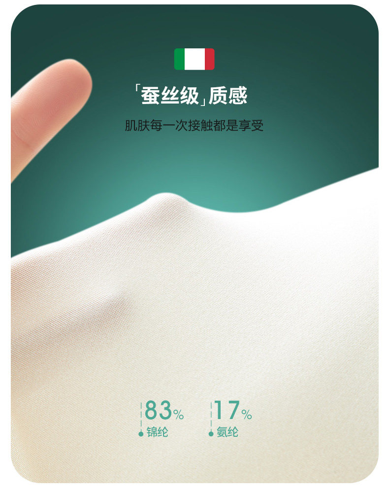 | 襠部材質成分 | 莫代爾纖維(莫代爾)85% 桑蠶絲10% 聚氨酯彈性纖維(氨綸)5% |