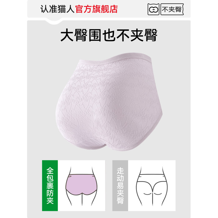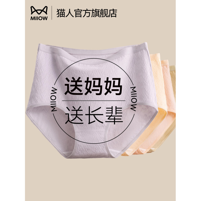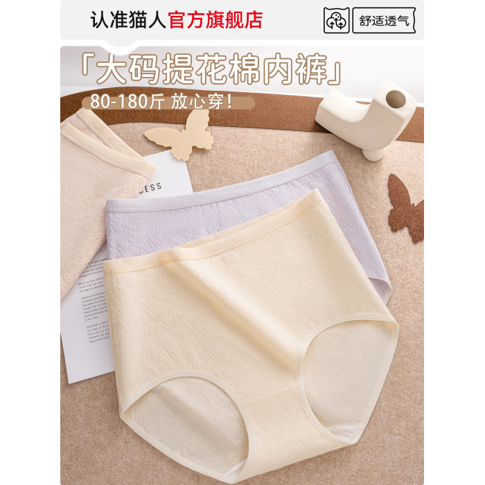 貓人官方純棉內褲女士大碼媽媽中老年2025新款胖mm高腰三角短褲頭