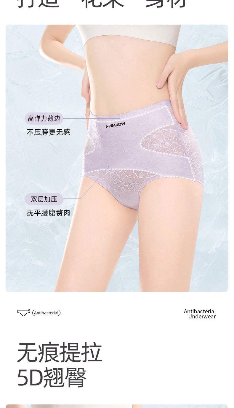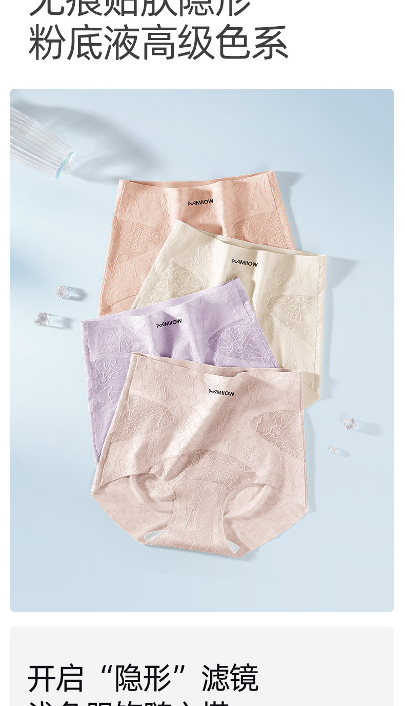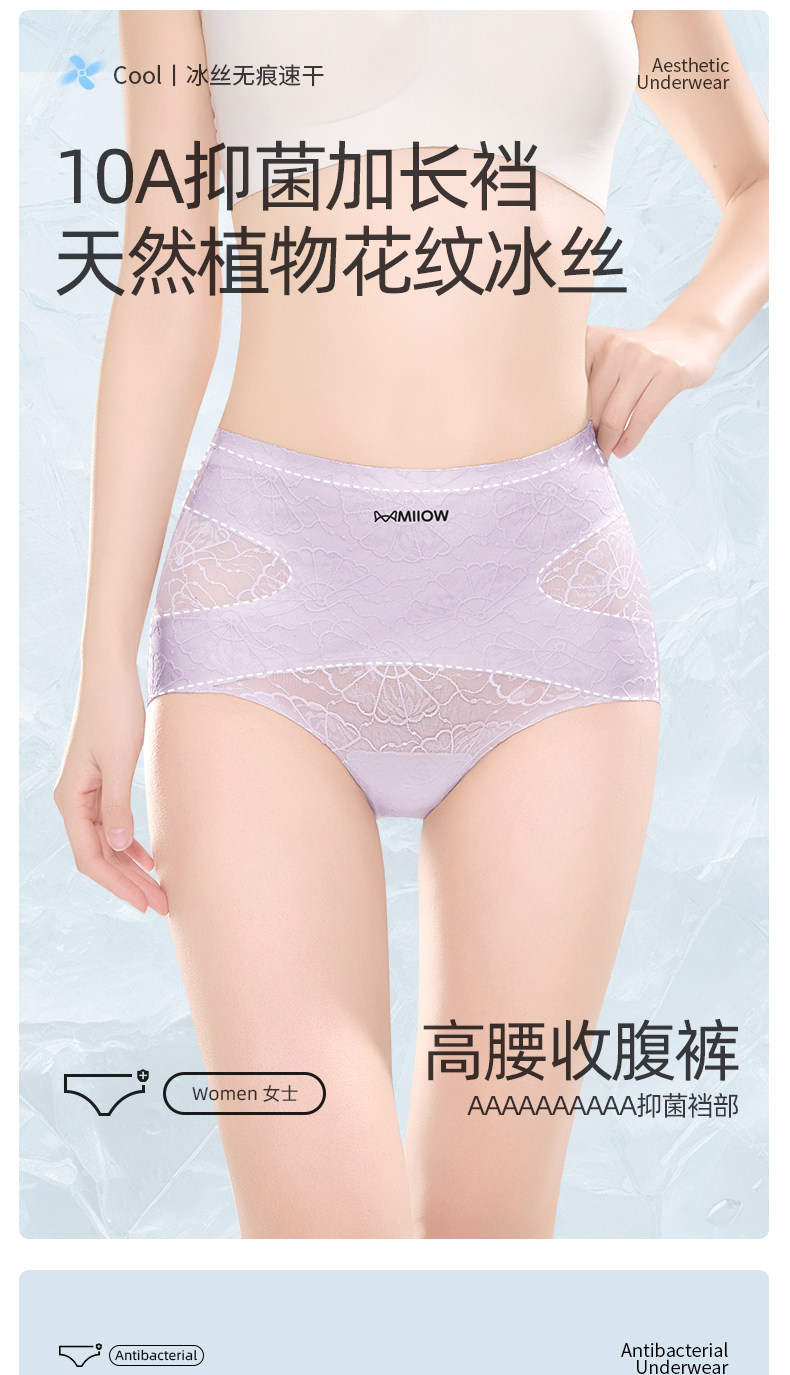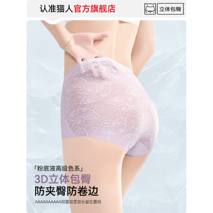 貓人冰絲無痕內褲女高腰收腹抗菌純棉襠2025新款蕾絲女士三角褲頭