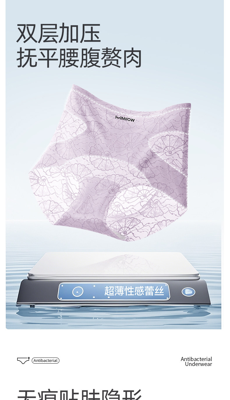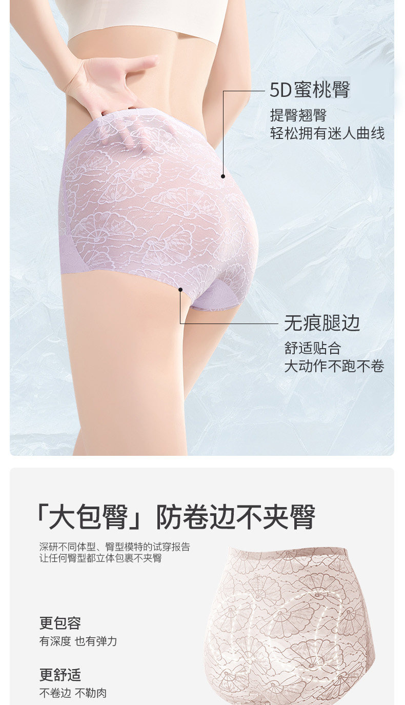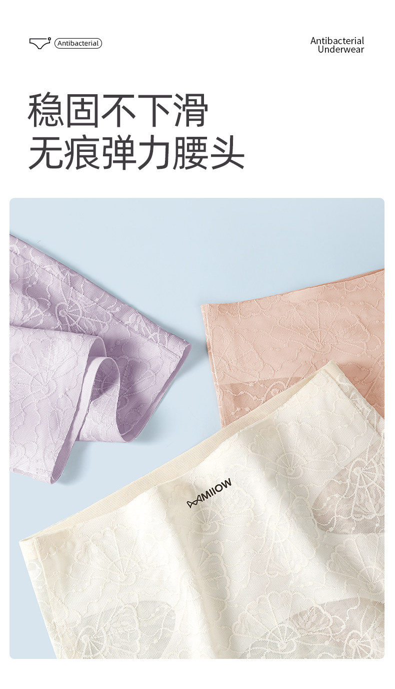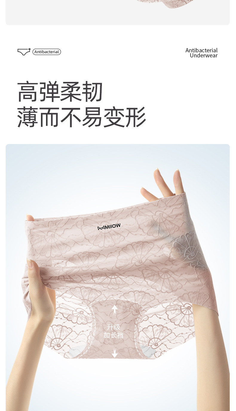 貓人冰絲無痕內褲女高腰收腹抗菌純棉襠2025新款蕾絲女士三角褲頭