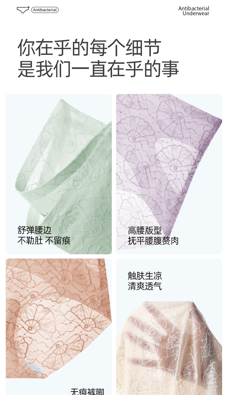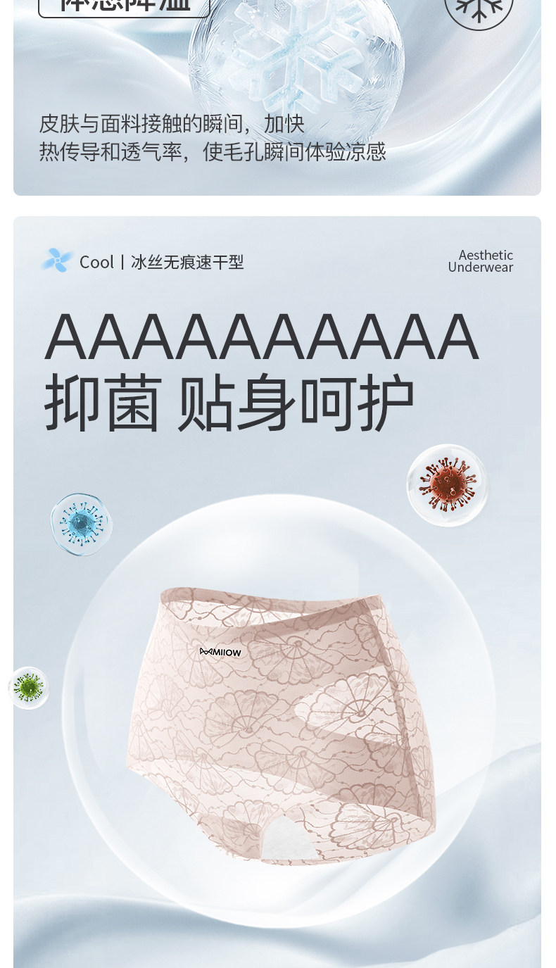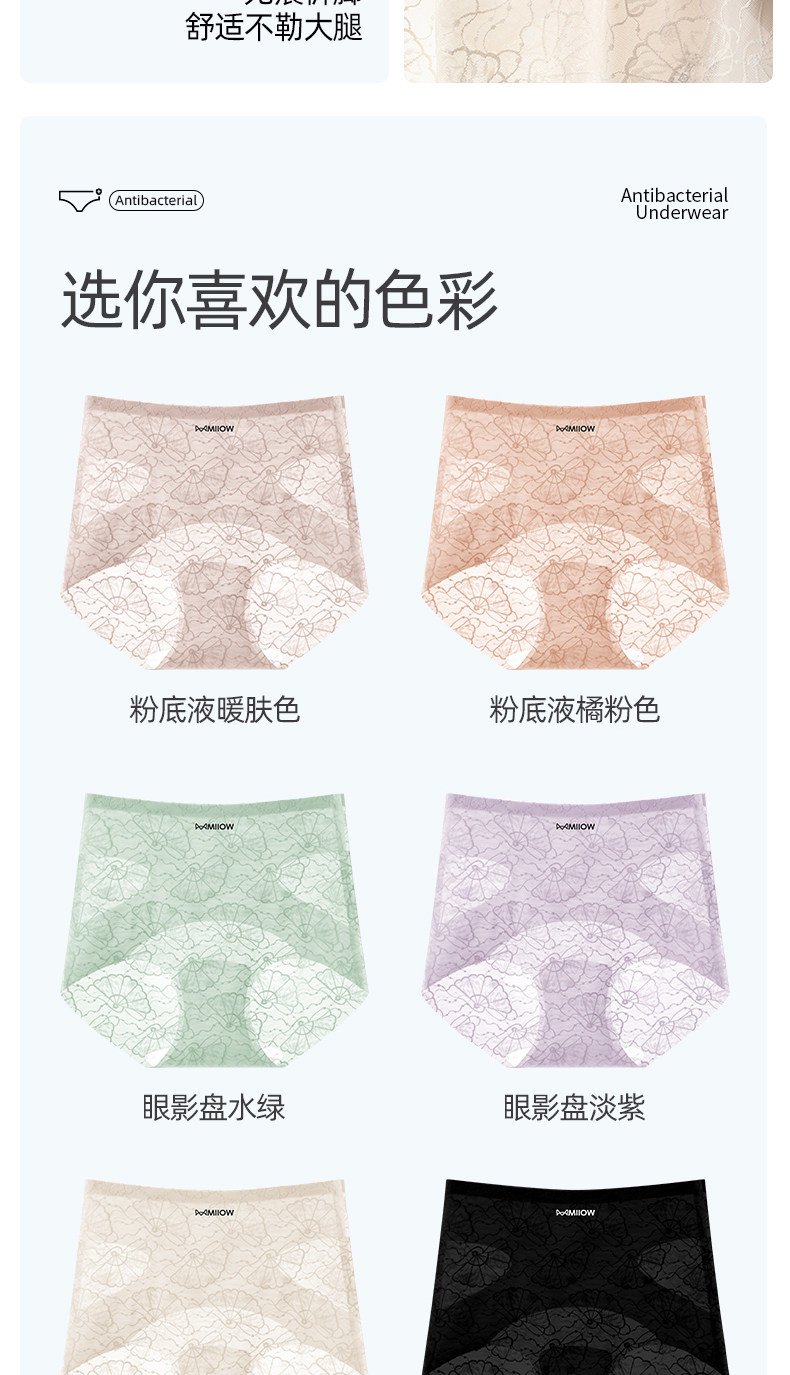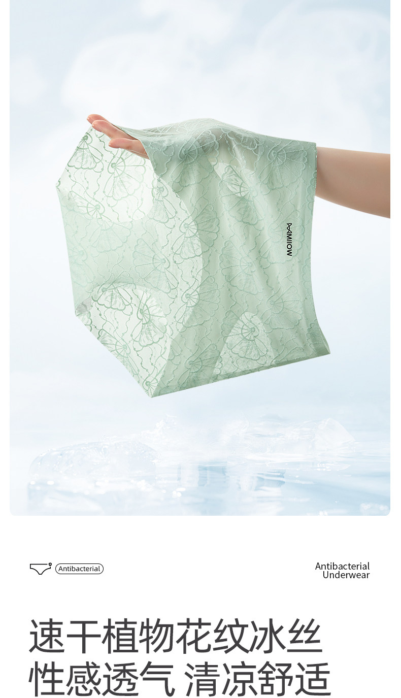 貓人冰絲無痕內褲女高腰收腹抗菌純棉襠2025新款蕾絲女士三角褲頭