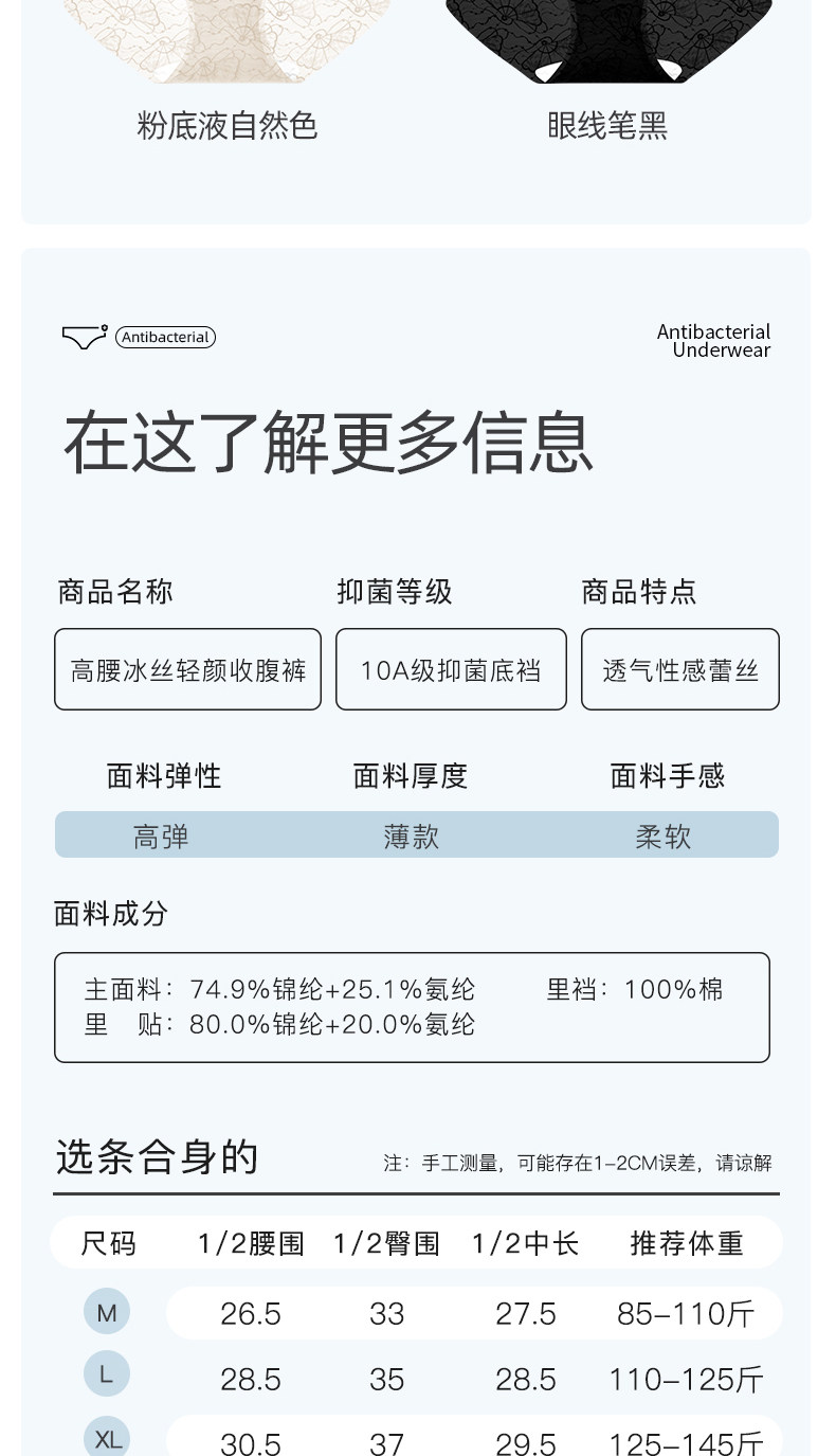 | 材質成分 | 聚醯胺纖維(錦綸)74.9% 聚氨酯彈性纖維(氨綸)25.1% |