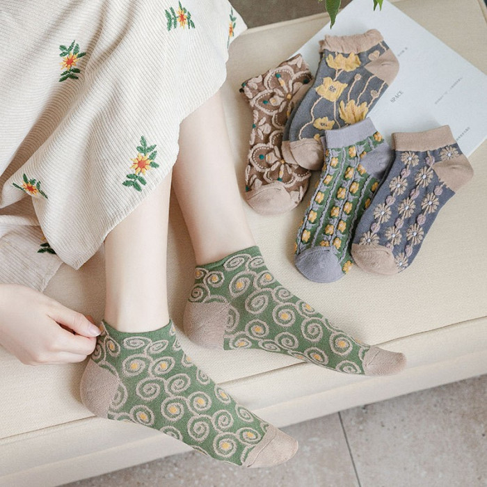 復古風襪子女短襪不掉跟森系潮襪浮雕女短襪宮廷低幫短襪百搭