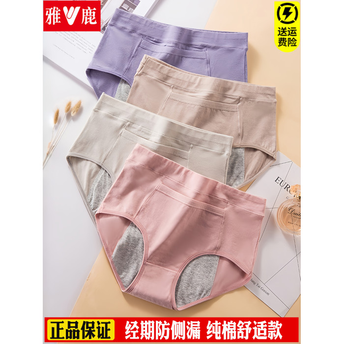 雅鹿生理內褲女純棉中高腰月經期防漏例假安全褲少女學生姨媽褲頭