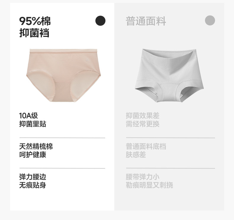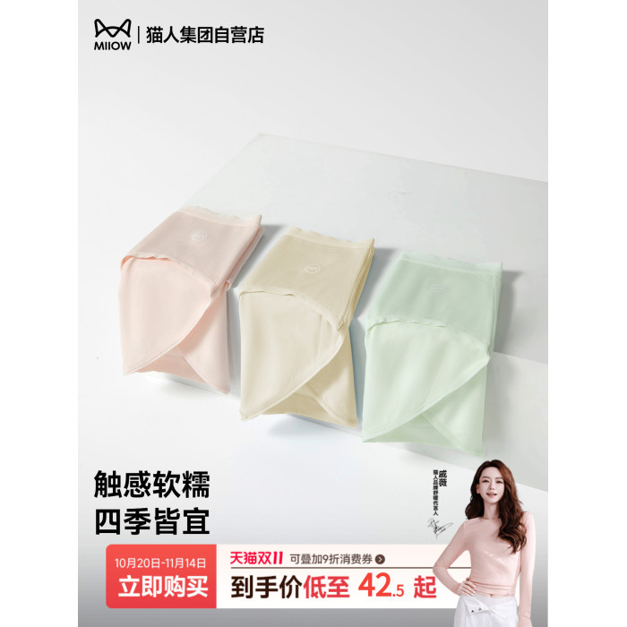 【特惠4條裝】貓人內褲女純棉10A抑菌襠中腰無痕透氣短褲頭