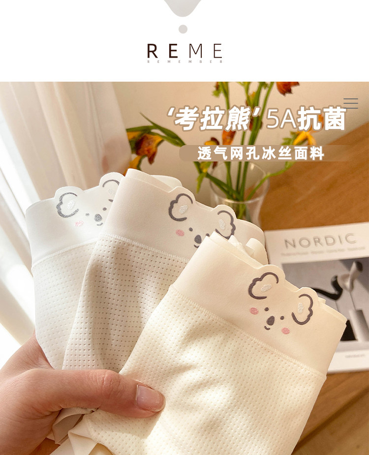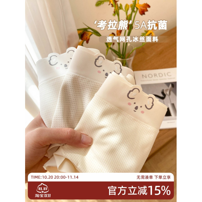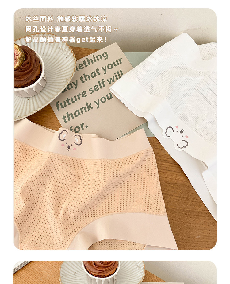 可愛考拉女士冰絲無痕內褲女抗菌女生純棉襠甜美少女網孔透氣舒適