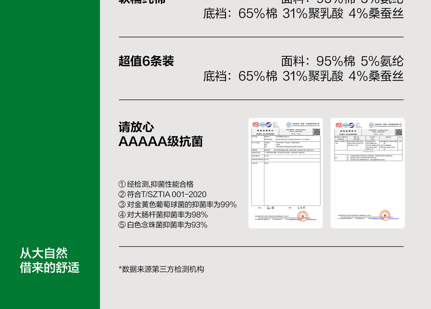 襠部材質成分 棉65% 聚乳酸纖維(PLA)31% 桑蠶絲4%