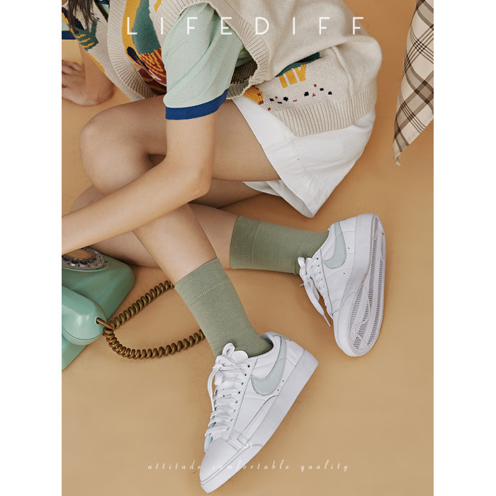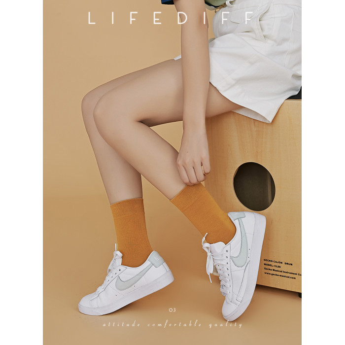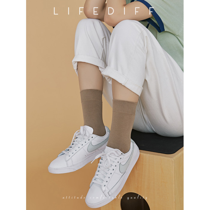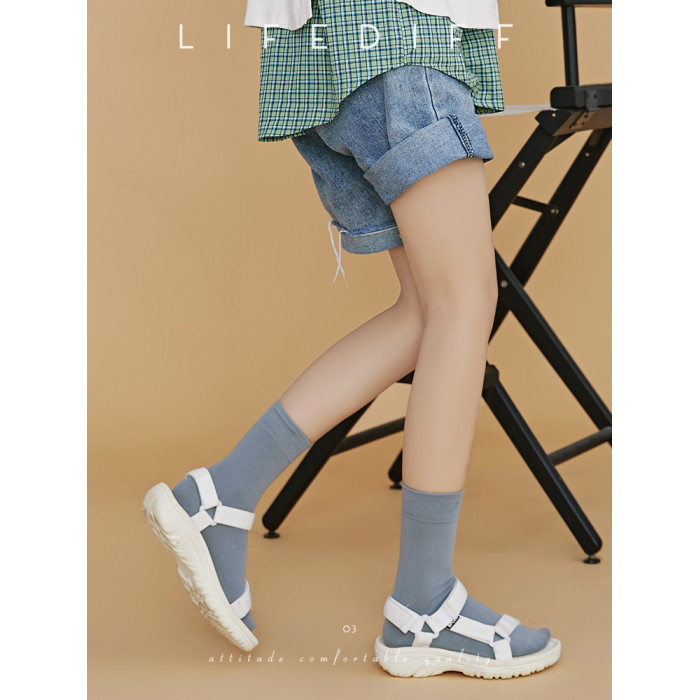 堆堆襪襪純色女士中筒襪春季襪子女黑色百搭夏季薄款長襪日系棉襪