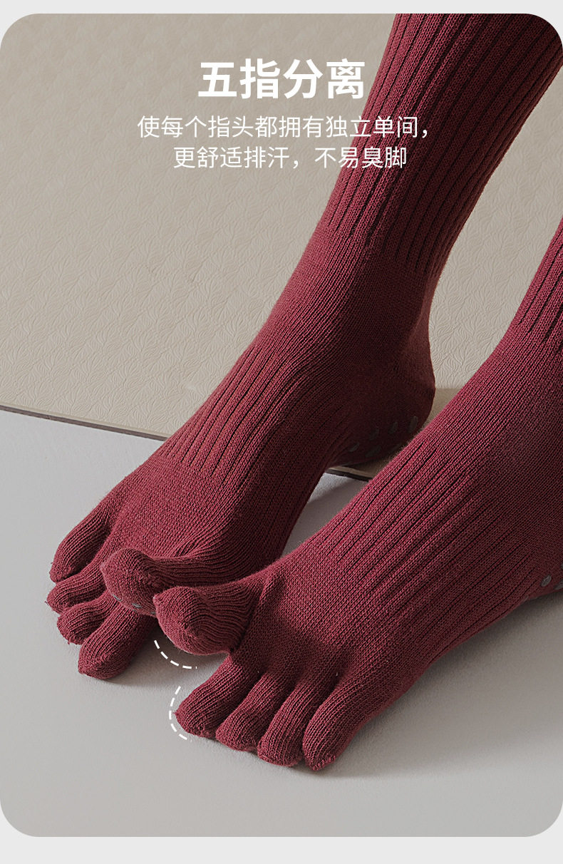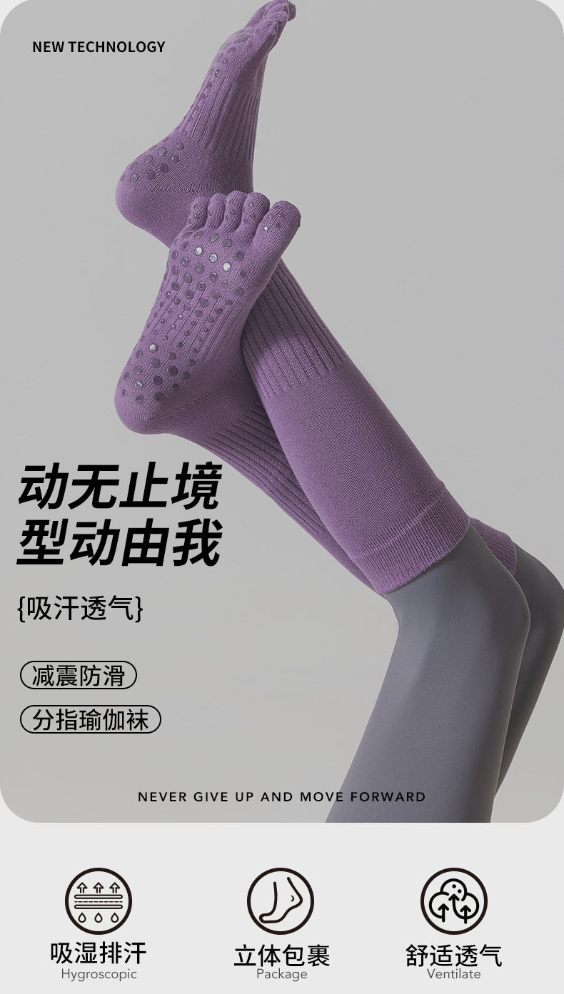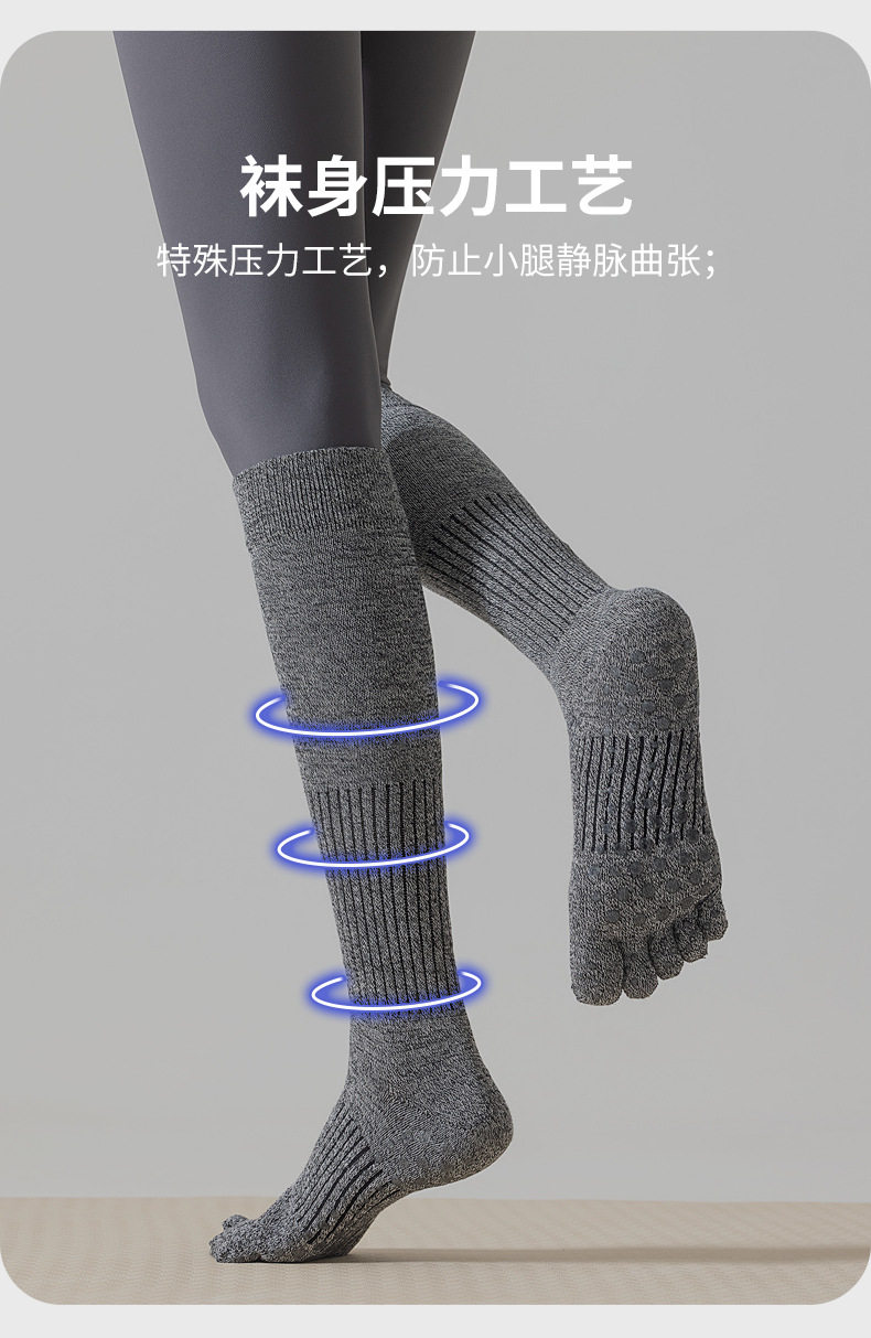 長筒五指瑜珈襪子防滑普拉提女2025新款分趾襪專業室內運動保暖