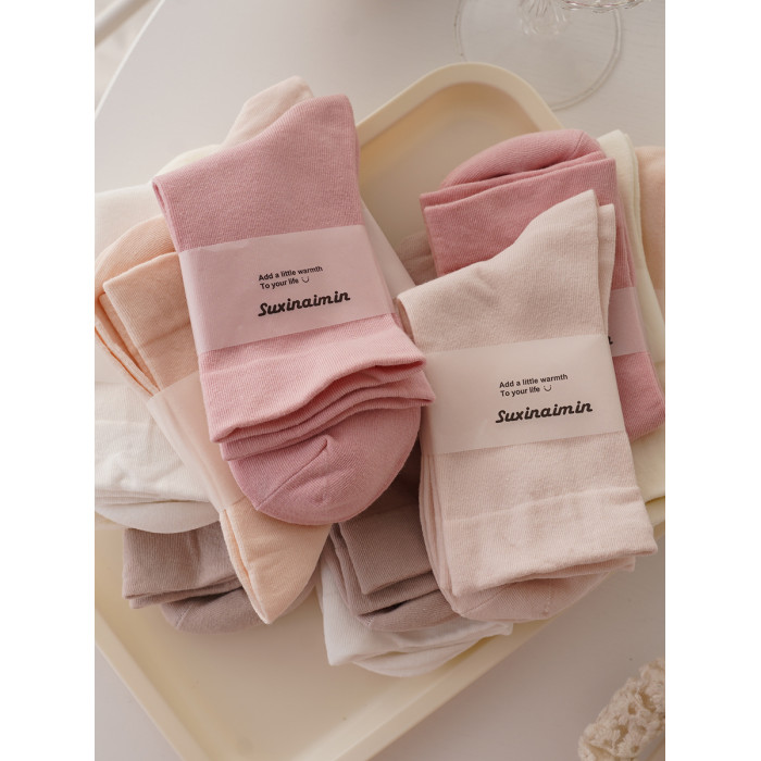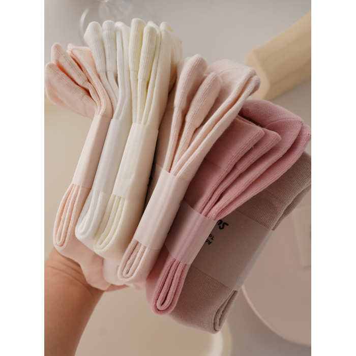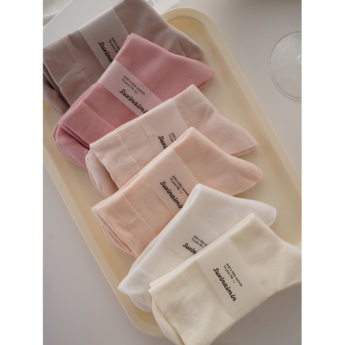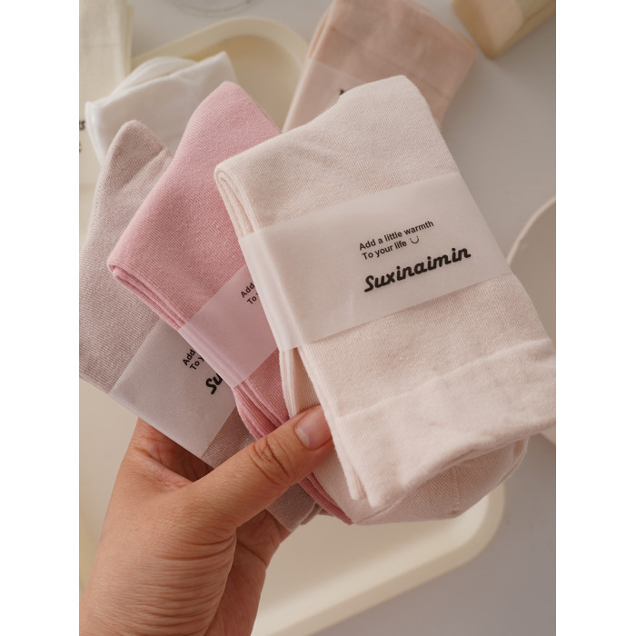 4雙裝 粉嫩少女日系松口純色女棉襪中筒秋季白色百搭運動長襪吸汗