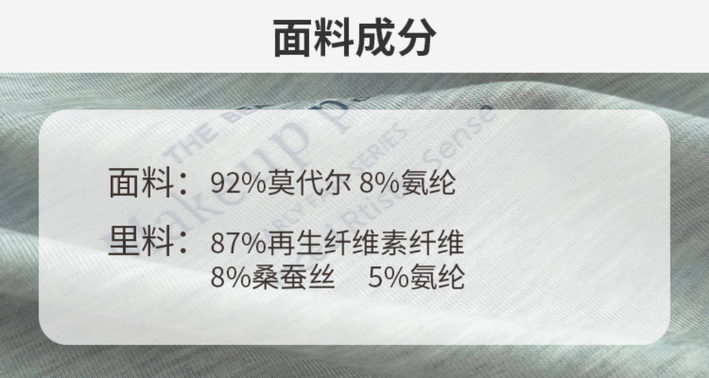 | 材質成分 | 莫代爾纖維(莫代爾)92% 聚氨酯彈性纖維(氨綸)8% |